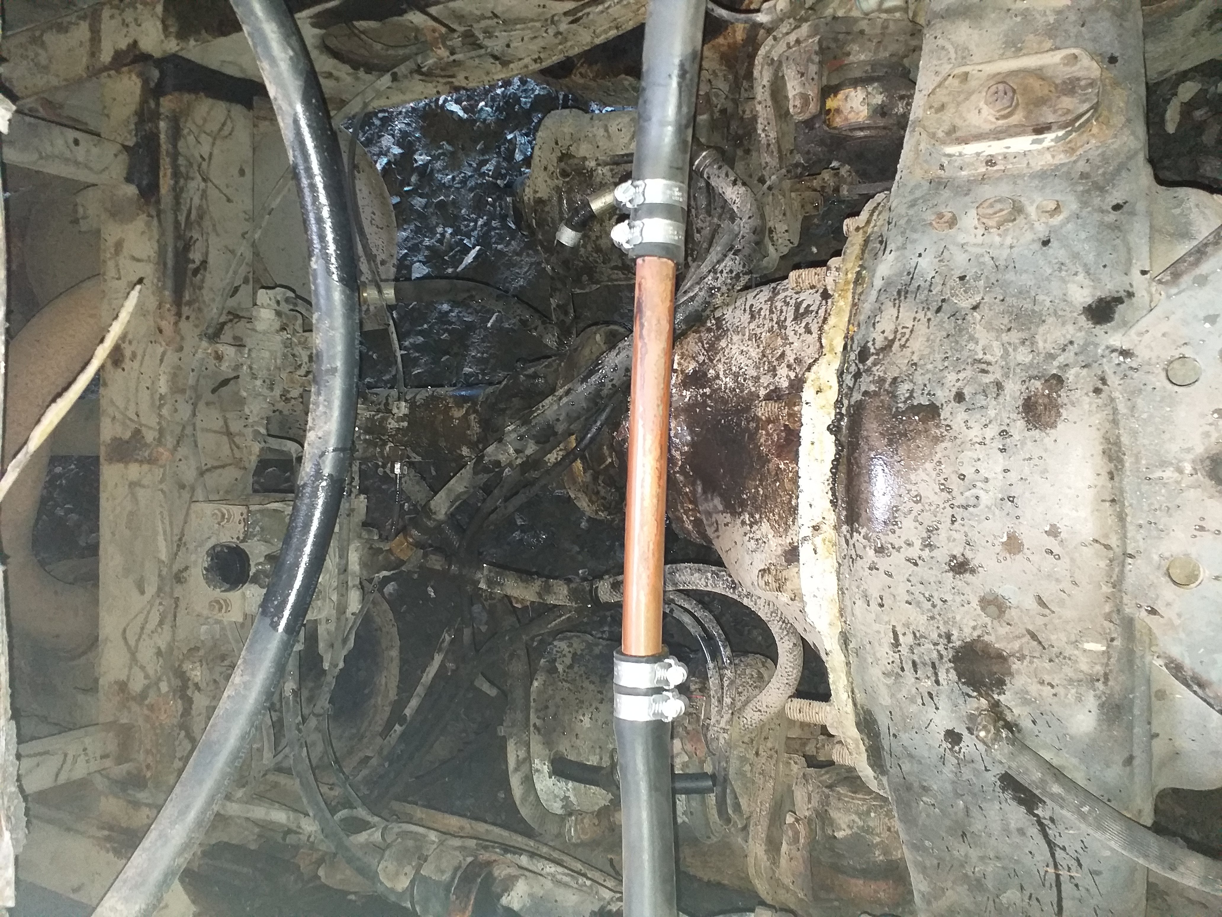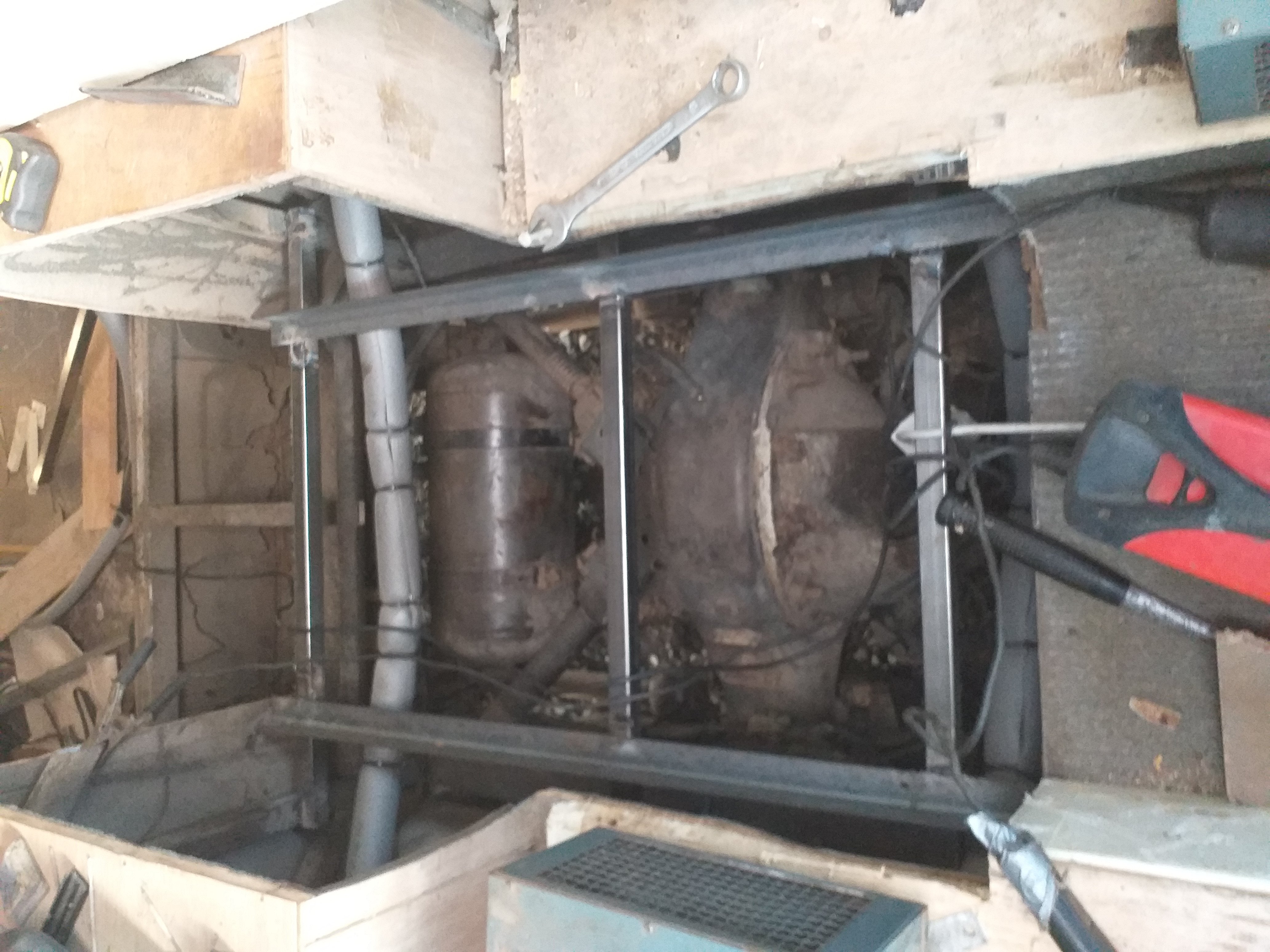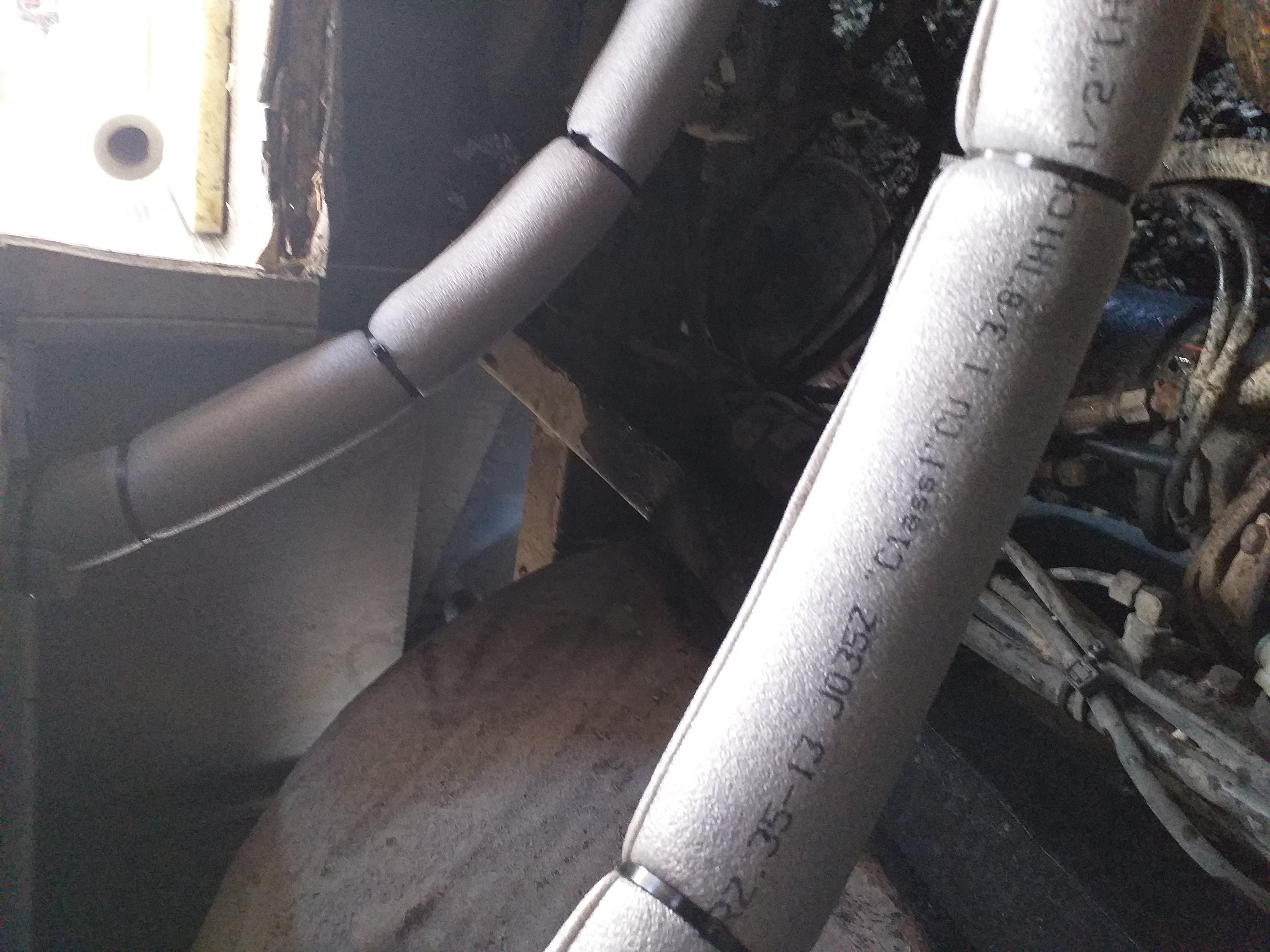 Pääsiäisen saldoa. Eristin lämmityspatterinputket auton alta, samalla paikkasin lokasuojasta reiän pellillä, sitten aloin tekemään lattialle runkoa.