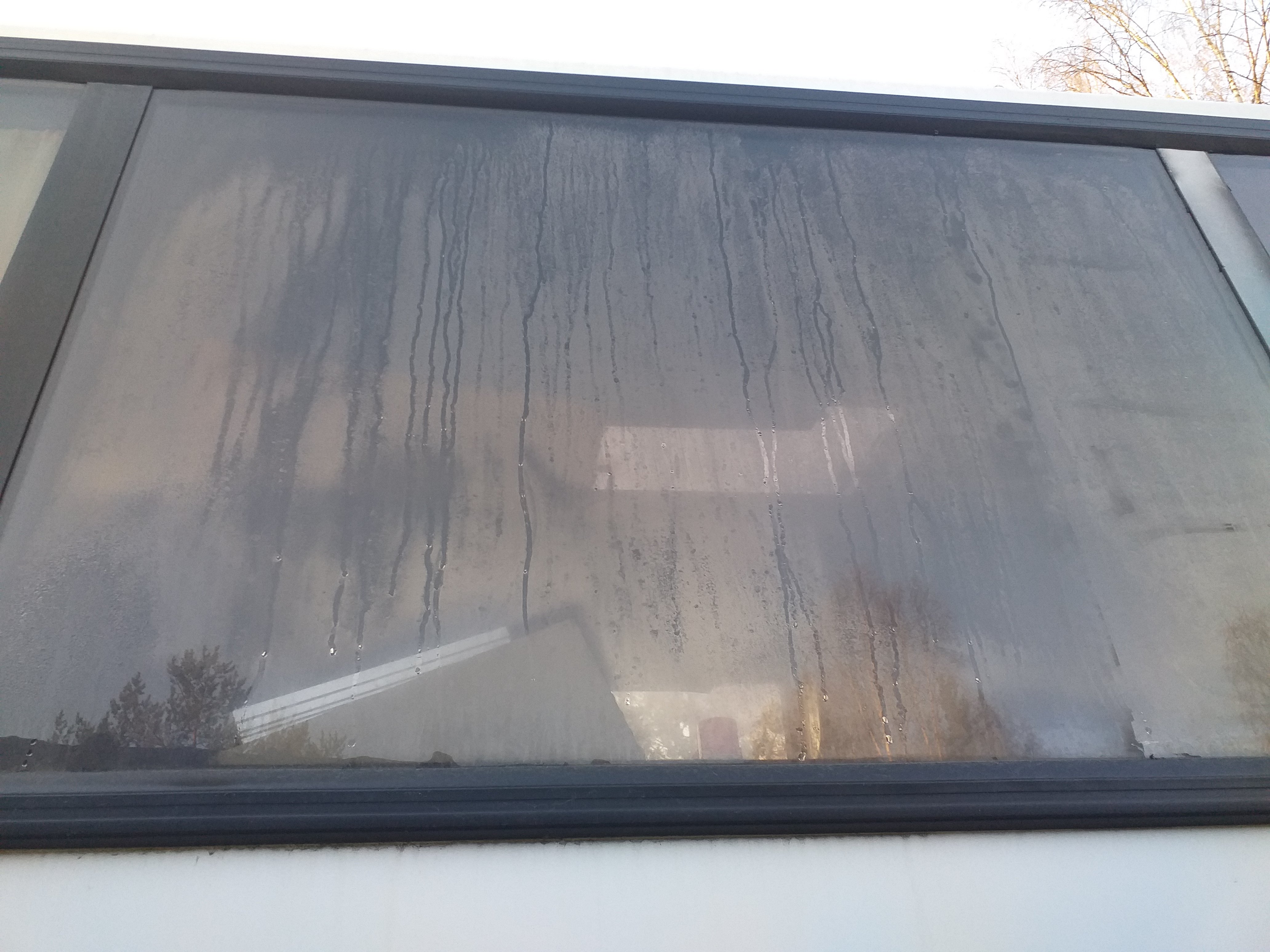 Prkl. Edessä on ikkunat saanut kosteutta sisäänsä. Etenkin vasemmalla ekat kaksi. Miten monena vuotena lie olleet tuommosia, en tiä. Eli miten yleensä, kuivuuko ja puhdistuuko nuo itsestään, vai jääkö harmaaksi ja rantuiseksi?