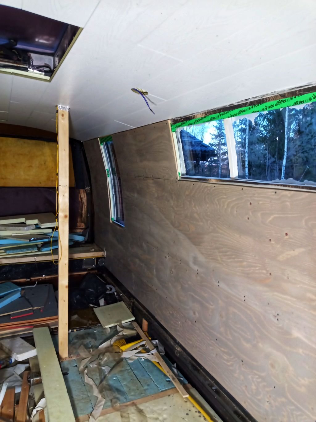 Jos on jo matkailuauto, katsastuksessa kelpaa myös keskeneräinen remontti. Kunhan näyttää siltä että on tulossa sängyt. Oli mulla siis 4 patjaa siellä, mutta ovat väärillä paikoilla. Ja lattia on kipsilevyä tai Finnfoamia, eli siis on mutta ei "oikea". Etuosassa on peri metriä mallina laminaattia...