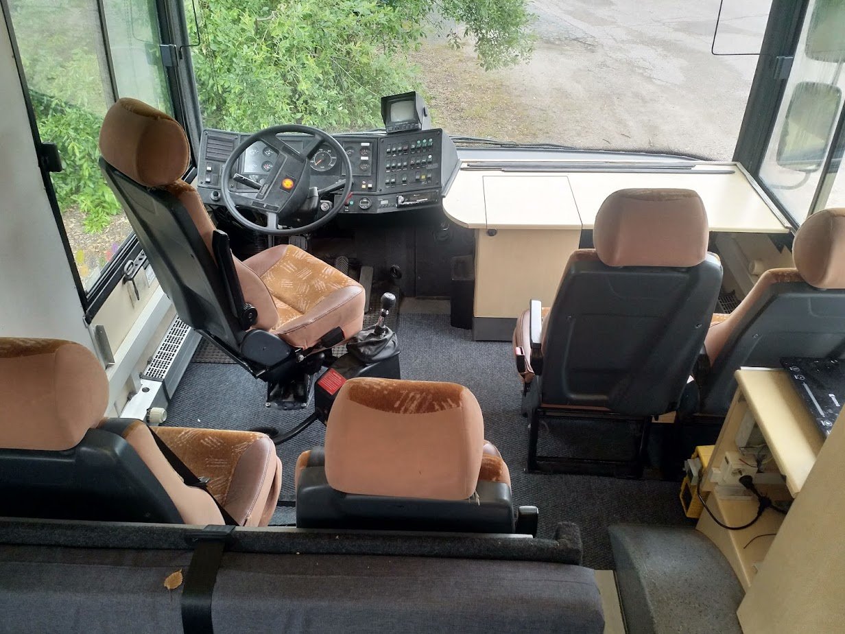 Hyvin sopii tuo kaksiosainen ulkoväri. Hieno bussi sisältäkin sekä tarina rakentamisen taustalla 8)