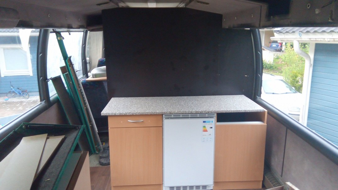 Tällä hetkellä nakerran pikku hiljaa sisustaa kasaan katto, sauna ja pientä muuta paneloitavaa hieman. Sen jälkeen vuorossa paneelit katolle ja ruuman osalta vesitankit ja varaaja paikalleen yms. pientä hipistelyä. Tarkoitus olisi päästä loppukesästä reissua heittämään.