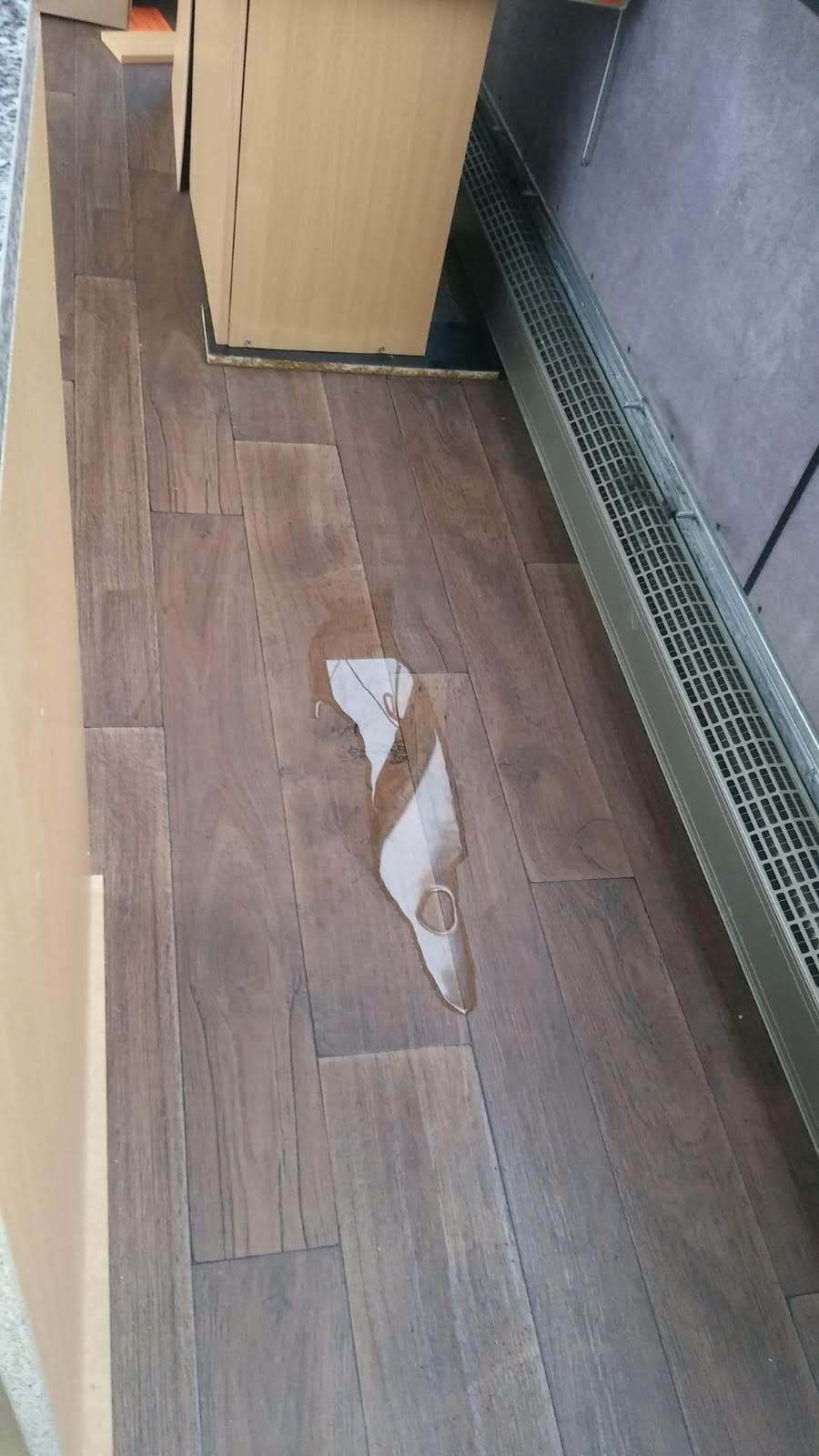 Katsastuksessa antoivat ukaasin seuraavalle leimalle korjata muutaman palkin ruuman alta joissa pari reikää. Tarkoituksena oli muutenkin vaihtaa vanerit ruuman lattiaan ja tässä oiva tilaisuus. vanerit pois ja näky paljastui, palkit olivat putken yläpinnoista aivan haperoa.