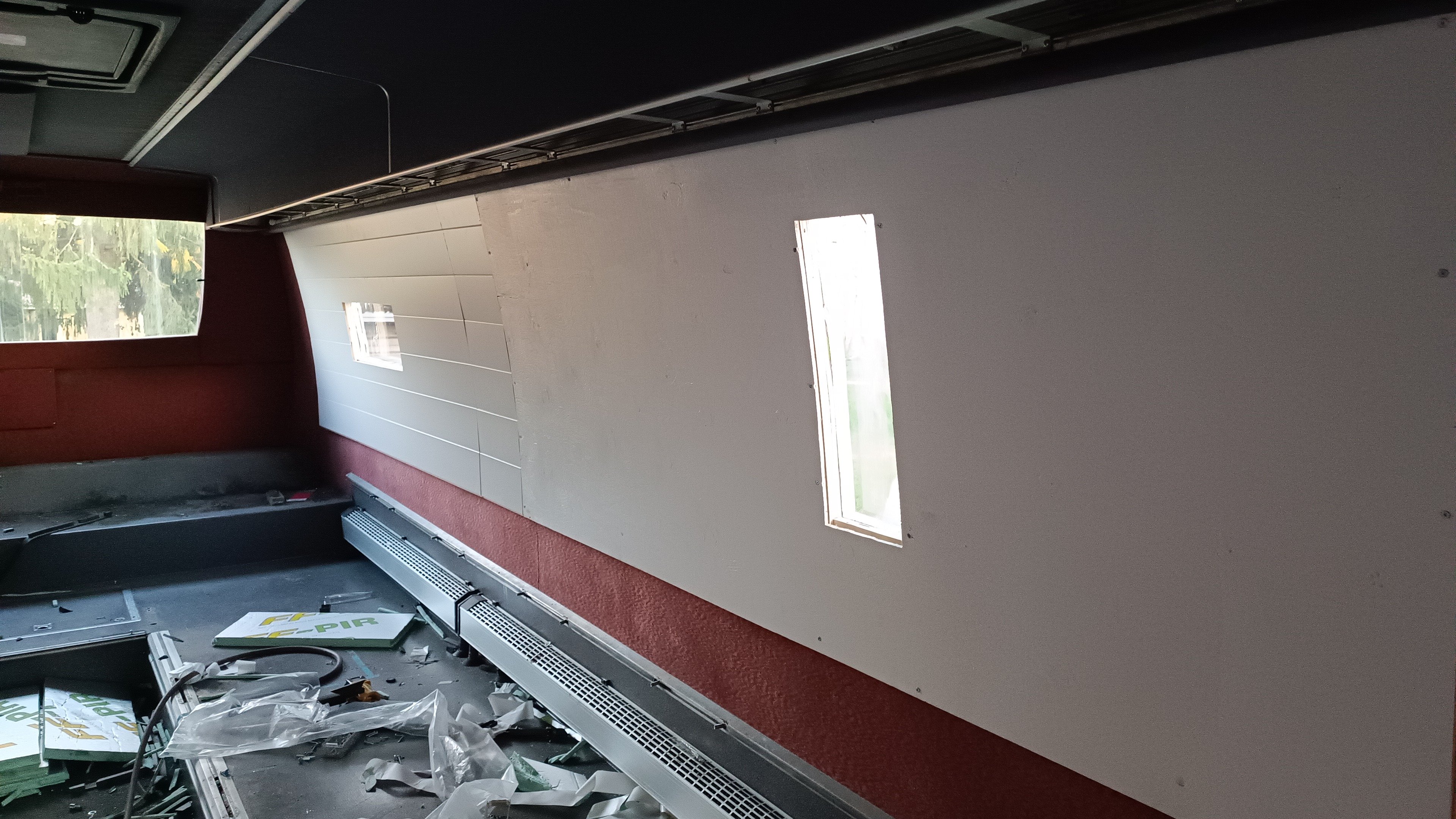 Vajaa pari viikkoa sitten tuli haettua Volvo. Aikaisemmat ollut myös volvoja ja enemmän ja vähemmän valmiiksi rakennettuja. Nyt oli rakentamattoman vuoro ja alusta asti tehdä liikkuva koti. Vuosimalli 2006 ja kilometrejä vajaa miljoona menty. Muutamaan päivään penkit ulos, ikkunoita umpeen ja sänkyjen päädyt verhoilua vaille valmiina.