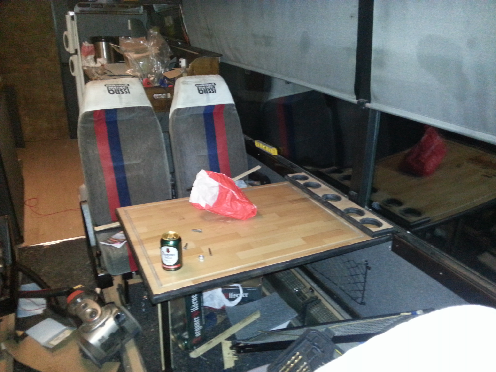 Miulla on tohon työkalulaatikkoon meininki tehdä systeemi jossa on nestekaasupullon kokonen säiliö nestettä. Termari ohjaa webastoa joka pitää pöntön nesteen lämpösenä. Toinen termari ohjaa kiertovesipumppua joka kierrättää pöntön nestettä pattereissa. Auton kierto on kytköksissä systeemiin lämmönvaihtimen kanssa, joten pidemmän matkan ajelu lämmittää pöntön nesteen johonkin lämpötilaan ja sitä voi sitten hyödyntää jonkun tunnin. Toinen vaihtoehto on käyttää manuaalisesti pönttö kuumaks webastolla ennen ko käy köllölleen, josko sillä selviäis kesällä aamuyölle asti tohottajan häiritsemättä yöunta. Yöpyminen ks. kikottimessa on vaan kesäaikasta.