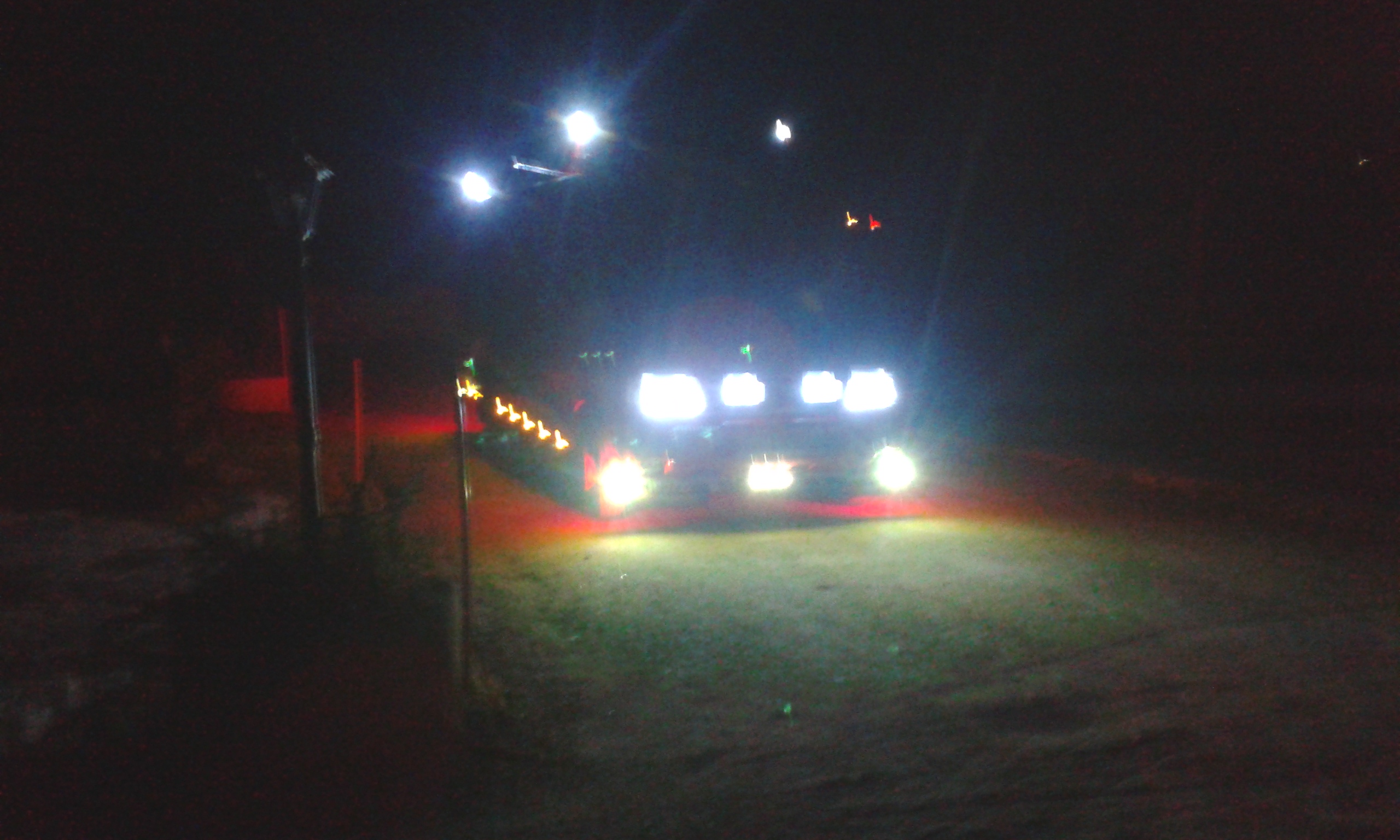 Ota meille nyt vielä pimeellä kuva autosta parkit päällä, niin näkee miten ne loistaa
