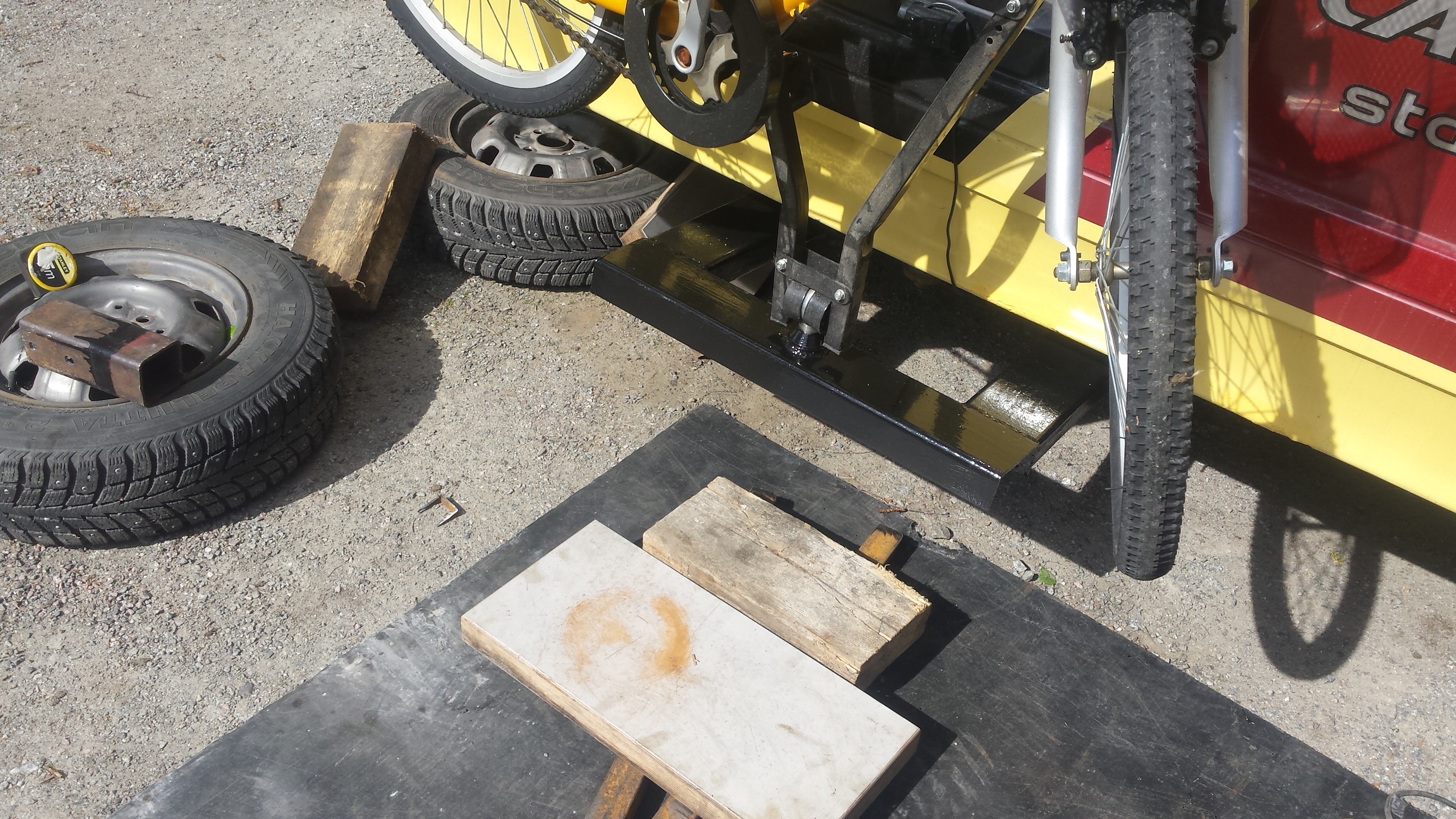 Tässä polkupyörä telinettä väsäilen mutta kaasuhan se loppui....