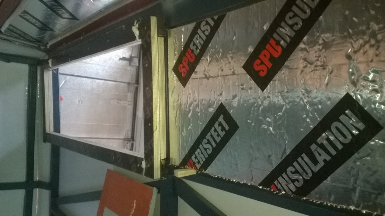en ehtiny saada tänäänkään koko eristys hommaa nippuun...(aloitin niin myöhään iltapäivällä) mutta nyt olis suuret seinä-alat eristelty ja jäljellä olis ns. matkustamon "tilkkutäkki" en muuten eristäis sitä samoin mutta mää ny yritän saada koko kotteron samalla tavalla eristetyks jos vaik se ei kesällä ihan niin paljoo lämpeis ja talvella ei kylmää hohtais...:D
