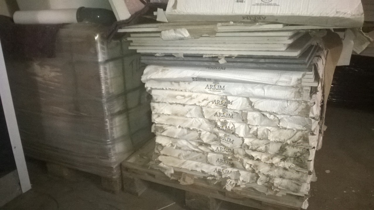 Eli melkein kaks täyttä lavaa olis... tota harmaata ei ikävä kyllä ole kuin noi kaks ehjää ja yks poikkinainen...sen hyödynnän varmaankin tulevan keittiön "työtasoksi" on omaan silmään ihan hieno sävy ja ei "riitele" ton vaaleen kanssa jos päätän sen lattialle "levitellä"