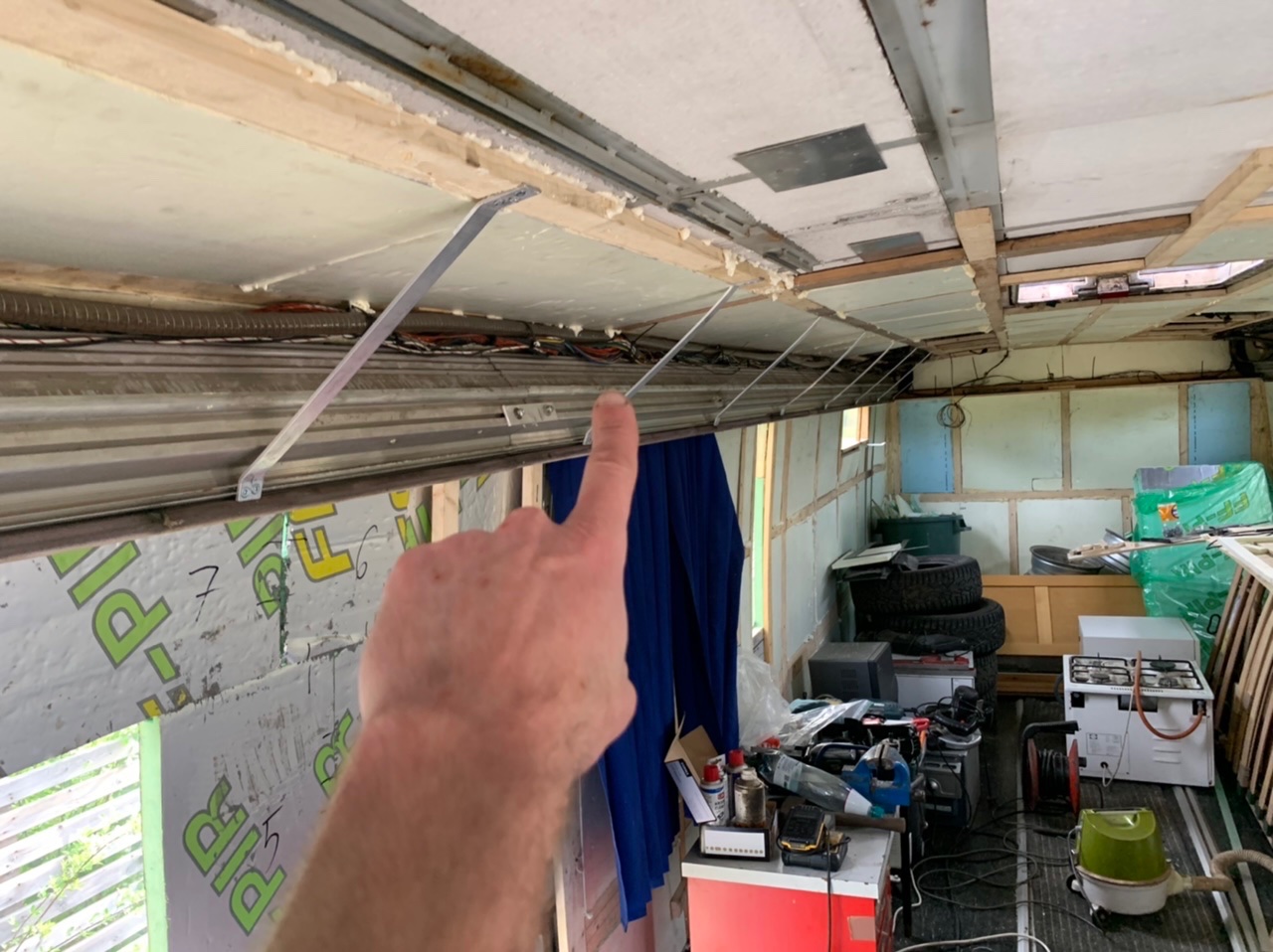 Poistetuille kattokanaville yrittäny keksii korvaajaa. Alumiinilatasta taittelin ruoteet ja faneeria päälle.