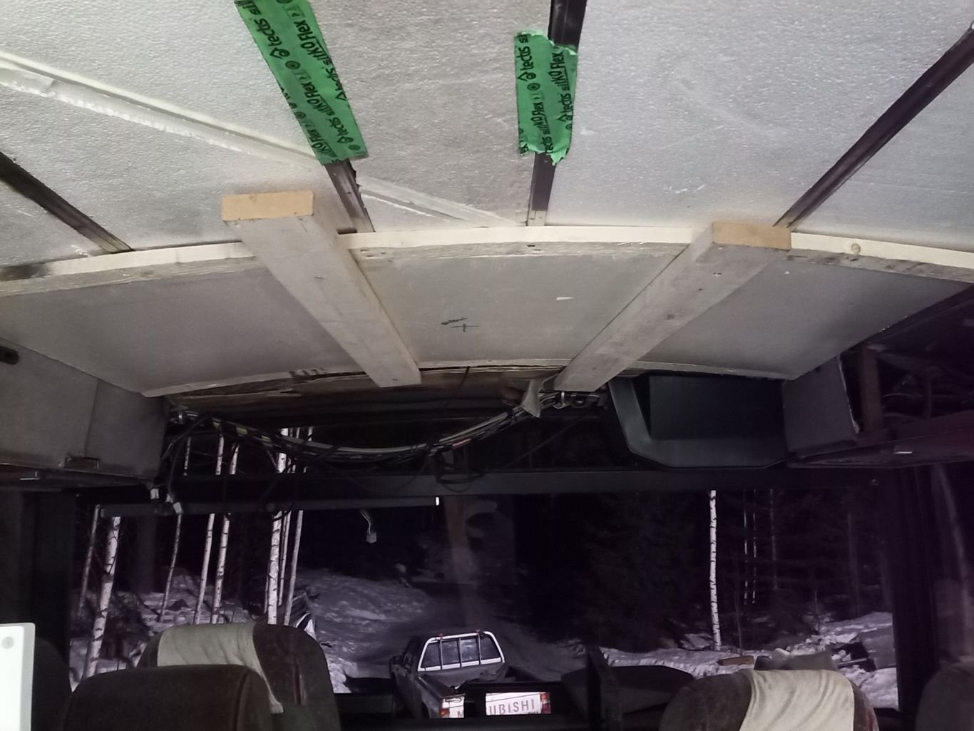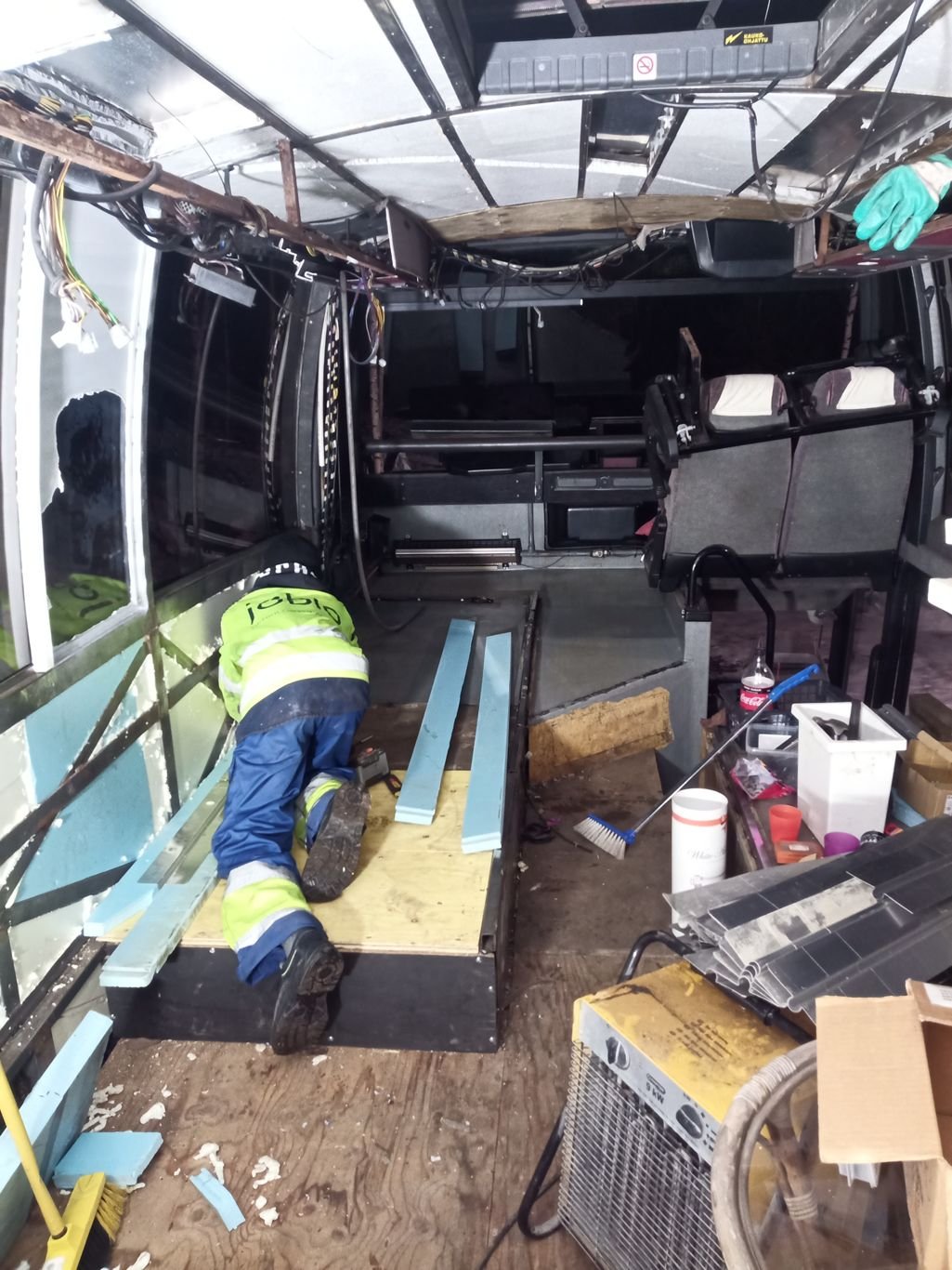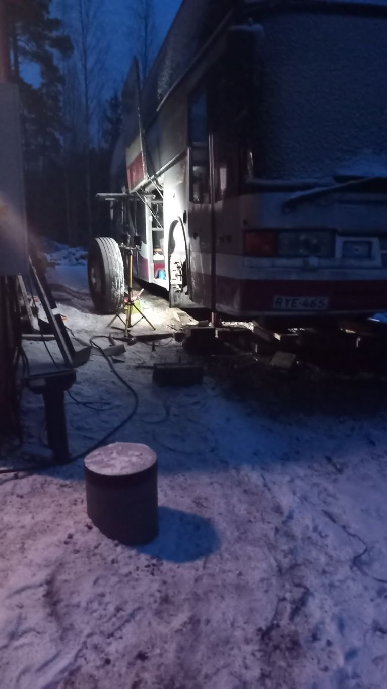 Kaikki muut linja-auto osat on toistaseks löytynyt paitsi ajovalon lasi. Nyt on keskitytty sisähommiin, tuli irrotettua kaikki kiintokalusteet, nehän tarttis saada paikalleen pikku hiljaa jos bussin aikoo katsastaa, ainakin penkkejä ois hyvä olla oikea määrä