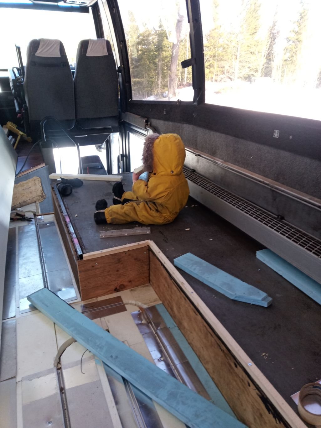 Nyt alkoi projektissa selkeästi uusi vaihe, kun pääsi tekemään sisustustöitä, eli korjaamaan sitä, minkä rikoin ensimmäisenä kun bussin sain... Takaportaat alkaa olemaan muodossaan taas.