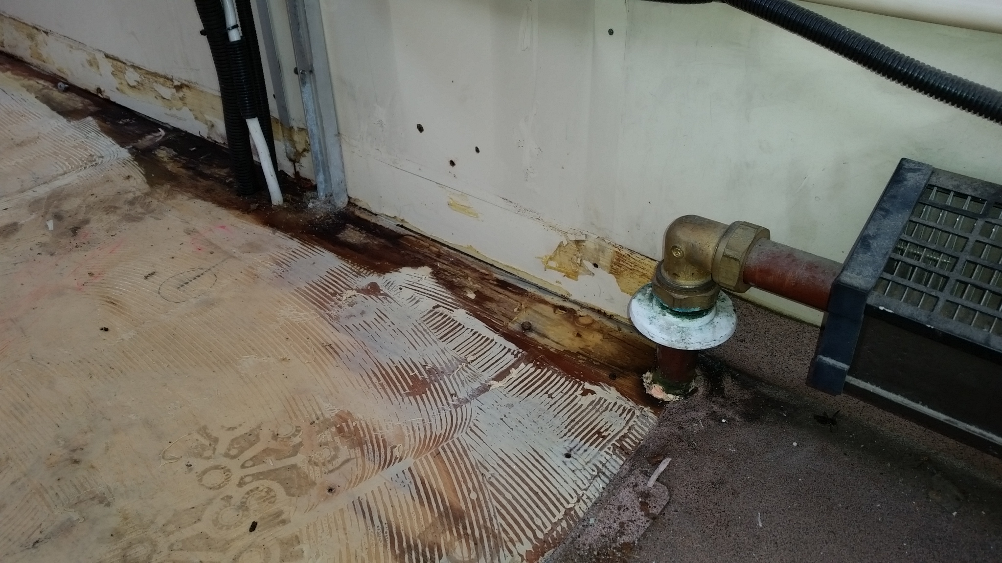 löyty myös hiukan pehmenemässä olevaa puuteollisuuden tuotetta...kivasti tuo patterin putki vuotanu ja tuo wc tyhjennys luuku...