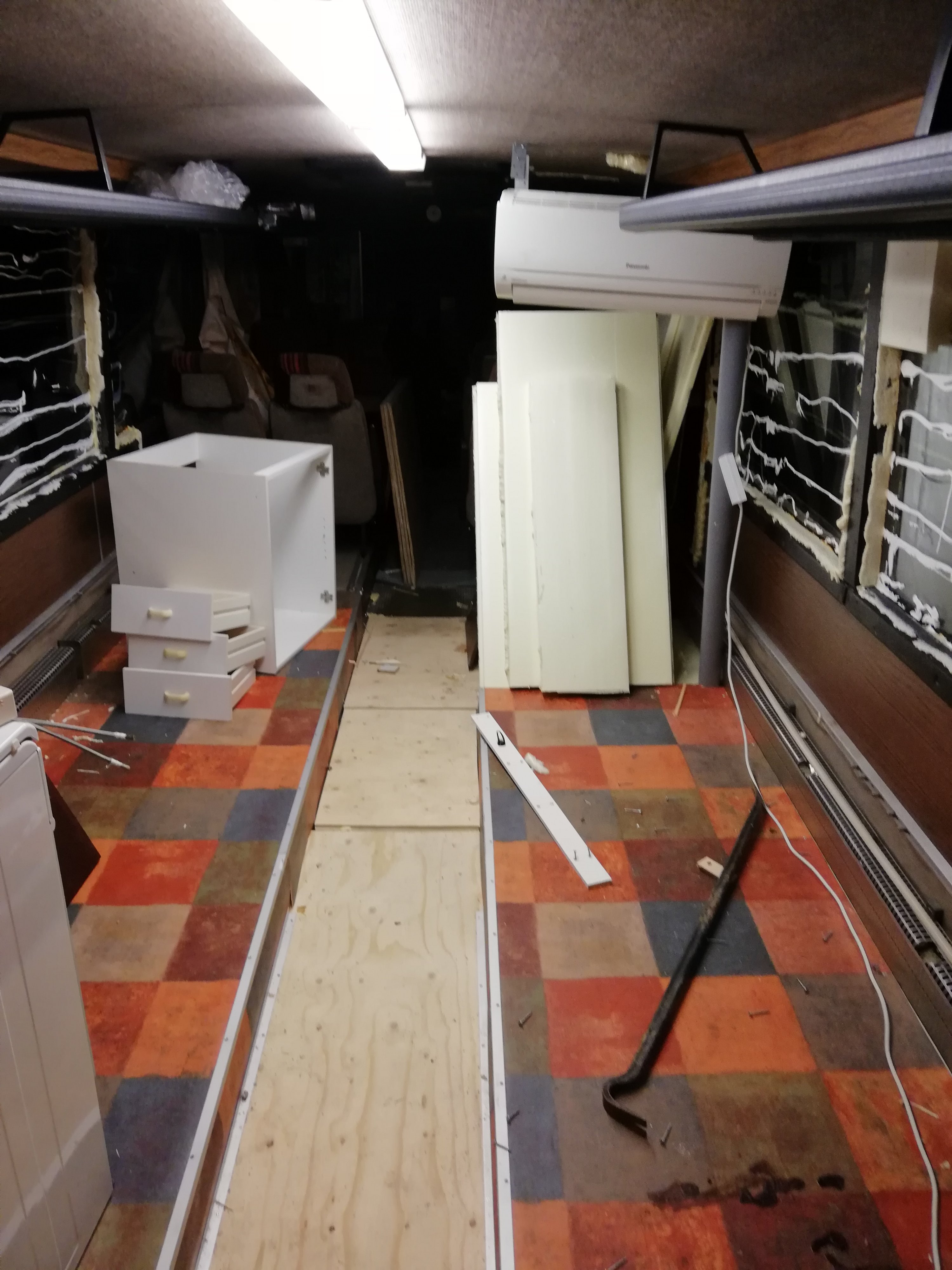 Selvittelen tuota webastoa. Hermojen lepuutukseksi tehtiin 170km suuntaansa reissu vuolijoelle. Haettiin vihreän scanian omistavalta kollegalta "uudet" penkit joissa on vyöt. Ostin samalla pari rengasta ja masennuin kun kokeneemmat immeiset opastivat että tuossa härpäkkeessä pitäisi olla talvella talvurenkaat. Ei ole m+s alla, eikä ole rahaa moisia ostaa.... No, penkit on ihan ok. Samalla sain tilaa lisää, kun entiset oli asennettu ihan liian väljästi. Tuli n. 40cm lisää tilaa. Toisaalta. Tuli vielä parempi kun en tajunnu oyytää kätisyjksiä, niin piti muuttaa suunnitelmia, mutta nyt toimii!