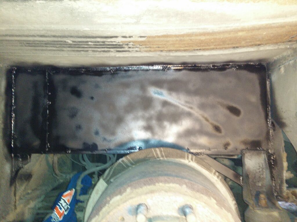 Eikö tuo kuraseinä voisi jatkua alemmaksi? Volvossa jatkoin runkopalkkia alemmaksi. Muta ei pääse rungon päälle niin hyvin kuin ennen.
