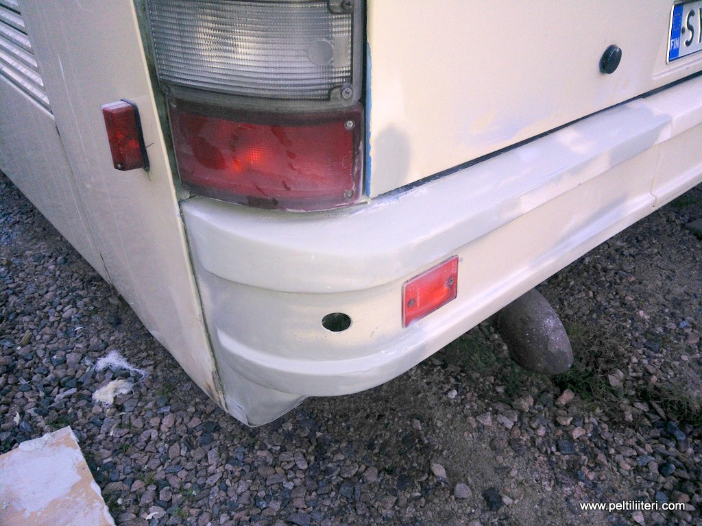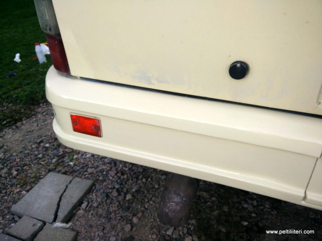 todella pienin askelin etenee kyljen laitto. Isäntä oli aikoinaan peruuttanut takapuskurin pahki, niin paikkailin sitäkin. Tällä menolla ehkä ensi viikolla pääsee maalamaan.