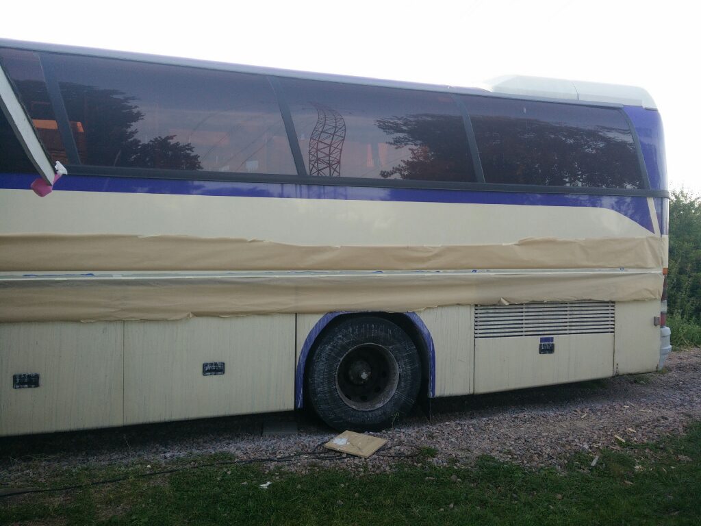 Takapuskuri tuli maalattua kokonaan, raita kylkeen.