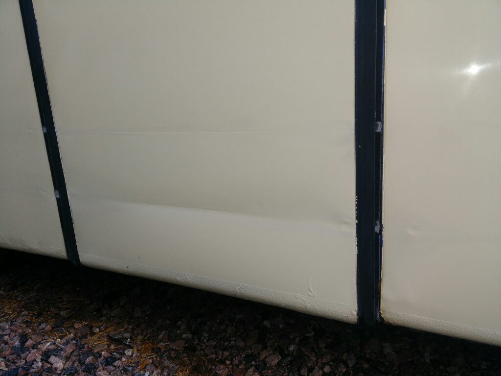 Minä tein nuo pellit alumiinista ja poppareilla niittasin palkkeihin. Saumoihin pienet kulmaraudat ja tiivistys butyylillä. Kuorrutukseksi runsaasti alustamassaa.