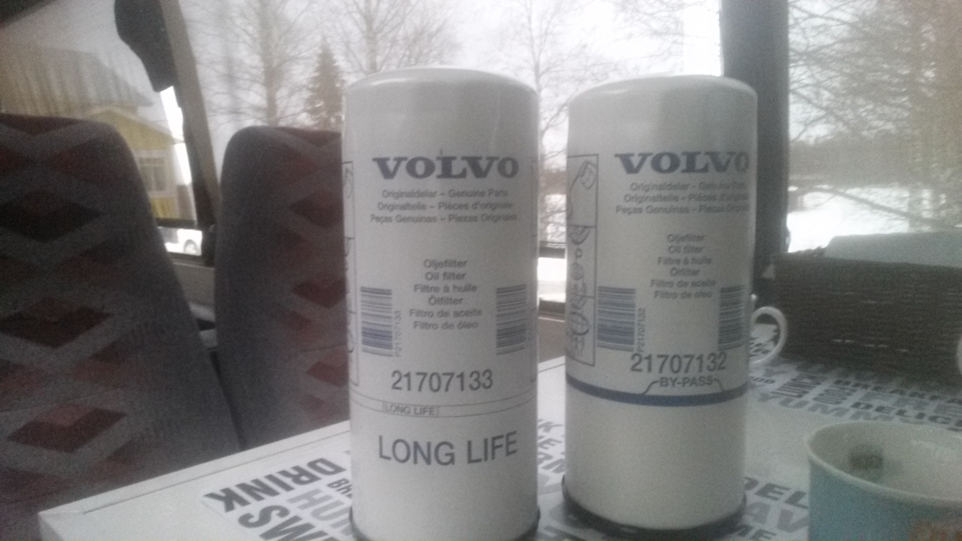 Miulle tuli ohivirtaus ja pääsuodin. Tämmöset. Ja ton verran maksoi öljynvaihto tukkirekkoinee miun EX duunissa. Thd 102 kone.