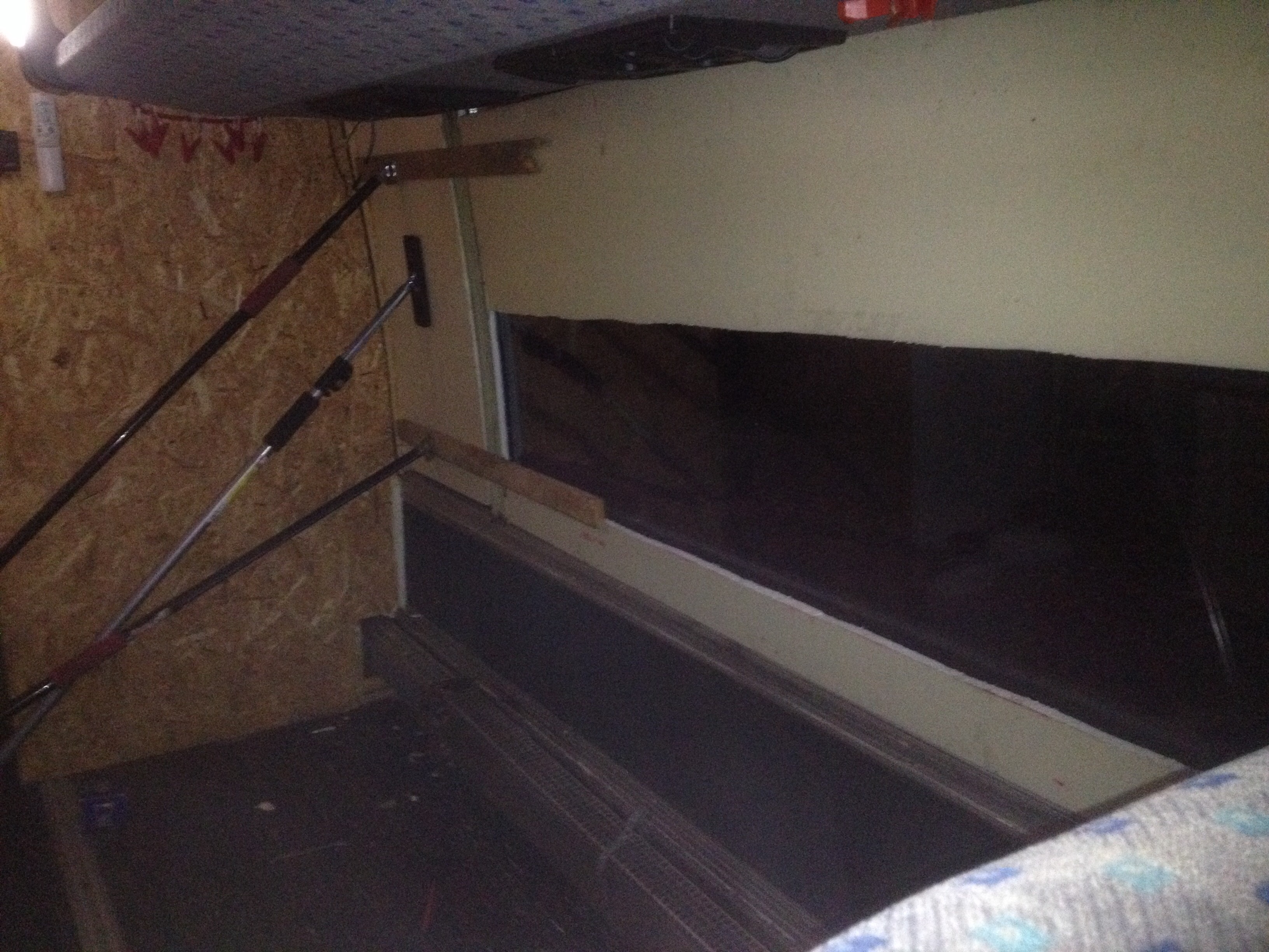 Eka kerros valmis ja "koolaukset" paikoillaan. Noihin pystyihin vaneerisoiroihin tulee päällimmäinen levy kiinni. Yhtään pintaruuvia ei siis tuu suoraan yhteyteen korikehikon kanssa.