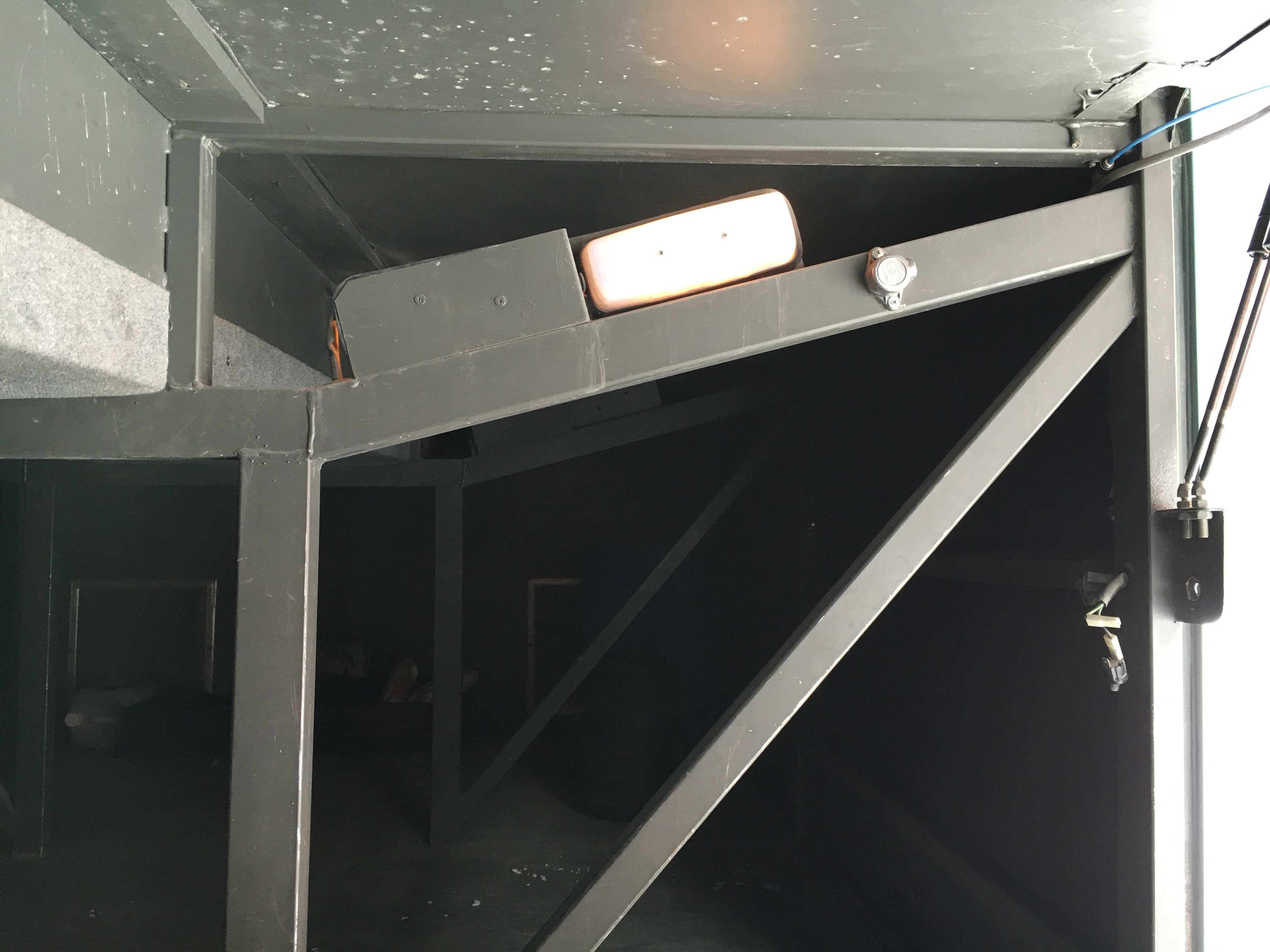 Bussi on pihassa ja purku aloitettu. Lattian laskemista vaikeuttaa noi vinottaistuet. Uskaltaako modifioida, onko kantava rakenne? Toivotaan et kuva aukeaa....