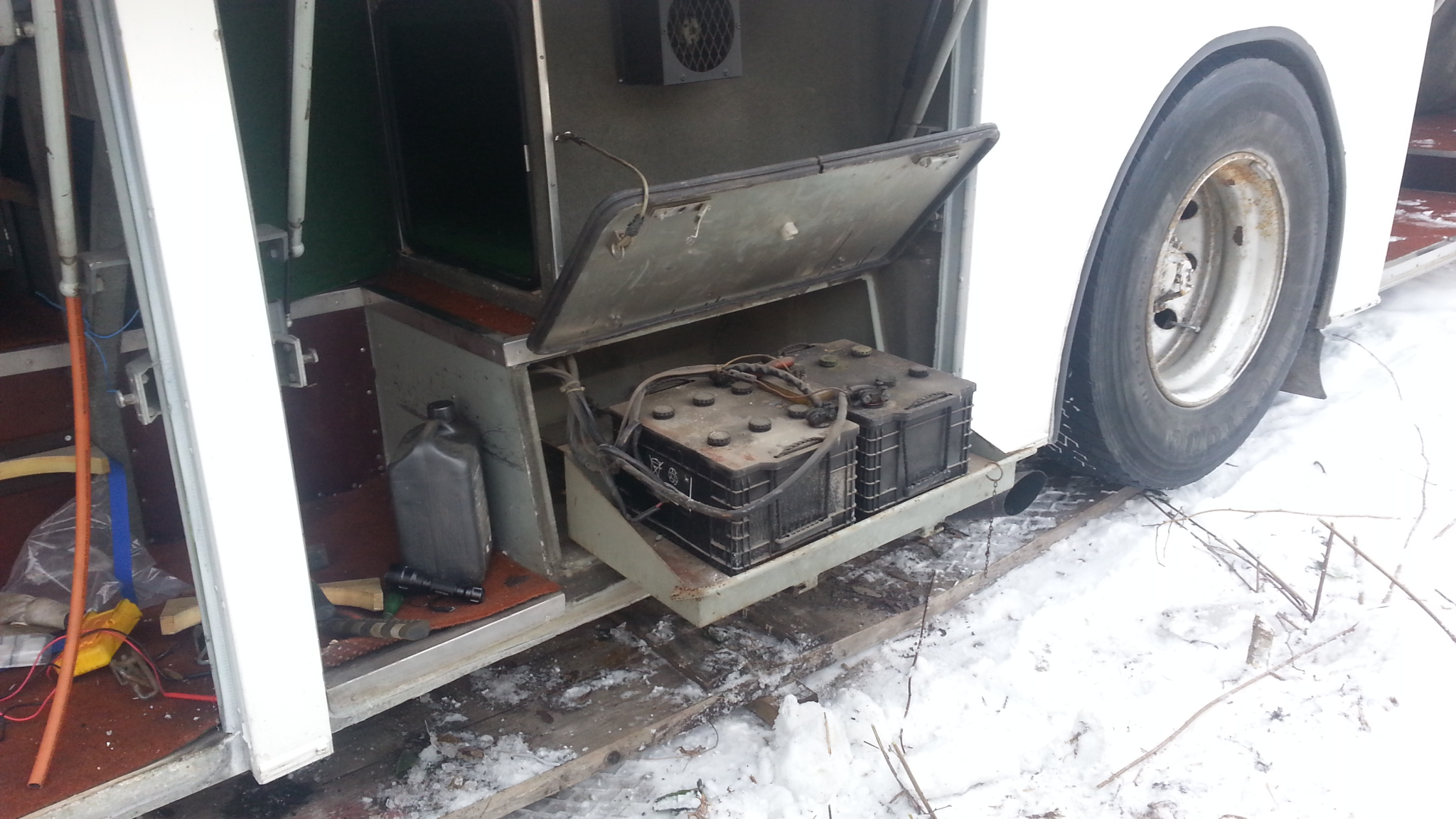 Suomalainen koriräätäli on siitä erikoinen eläin, että se on ymmärtänyt tehdä "kuten maksava asiakas haluaa" jo vuosikymmeniä sitten. Siksipä tämmöisiä 80-lukuisiakin löytyy, joissa on ties miten monimutkaisia ja/tai kehittyneitä ratkaisuja. Tosin - onko varmuutta, että tuo lisäakusto ja kotelo on koritehtaalla uuteen autoon tehty?Teuzca kirjoitti:Ei ne tuu starttiakuiksi, vaan hupiakuiksi. Ja eikös neljällä saa jo 200 ah hupia.
