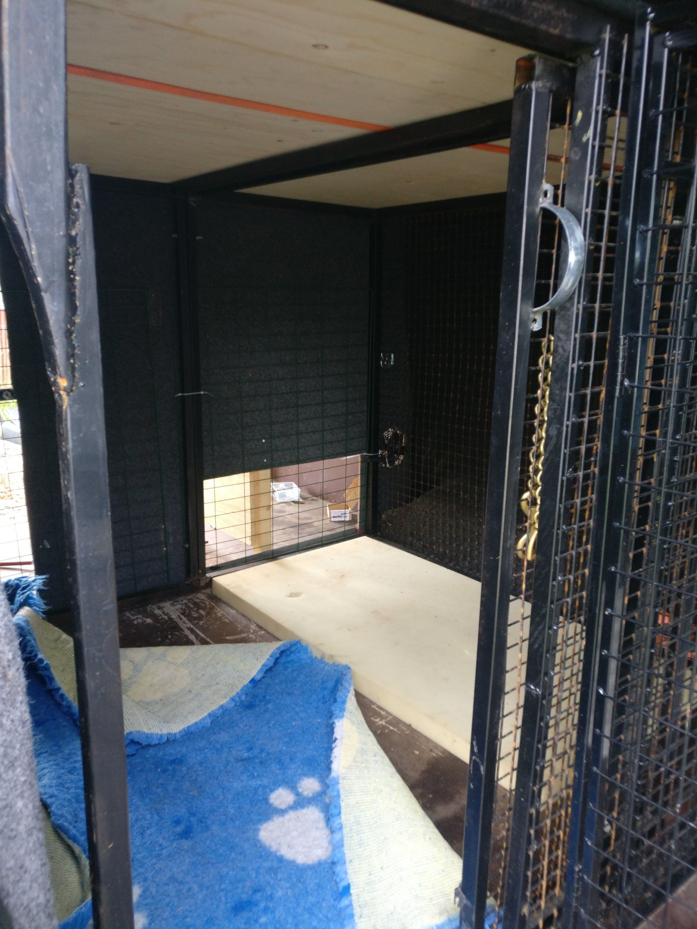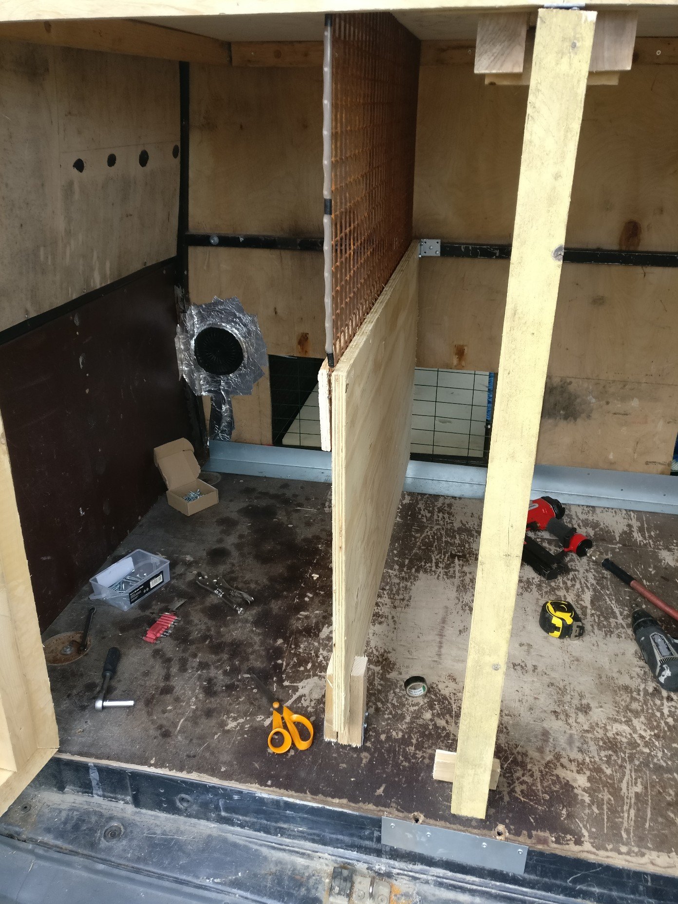 Sitä ennen pitäisi laittaa vielä vaneri tavaratilaan tehdyn häkin päälle, tehdä jonkinlainen stoppari ja lukitussalpa sängyn alla olevaan häkkiin laitetulle väliseinälle ja täyttää ilmastointi. Ainakin. Voi olla muutakin, mutta ei välttämättä muista :lol: