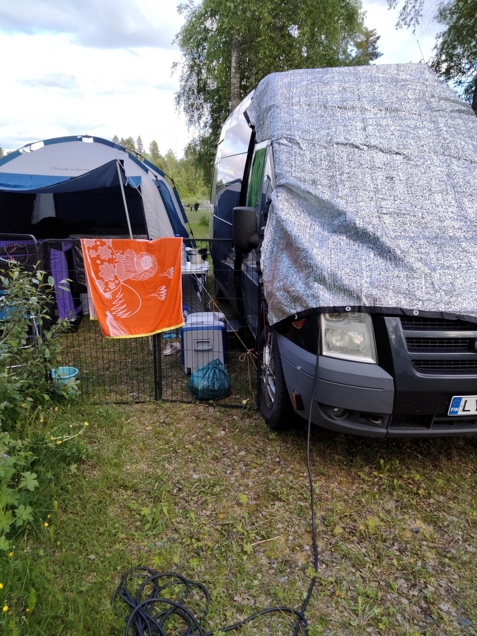 Ei ollut, mutta sähköpaikka järjestyi, joten ei muuta kuin kunnon white trash-leiri pystyyn :lol: