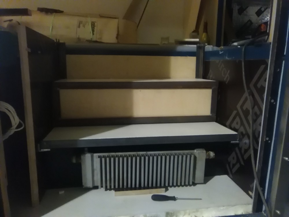 Silti jaarittelen, ensimmäiseen askelmaan (patterin yläpuolella)tulee saranat etureunaan siten että se "nousee vastaan" (vähän niiku meinaa välillä elonpolku nousta.