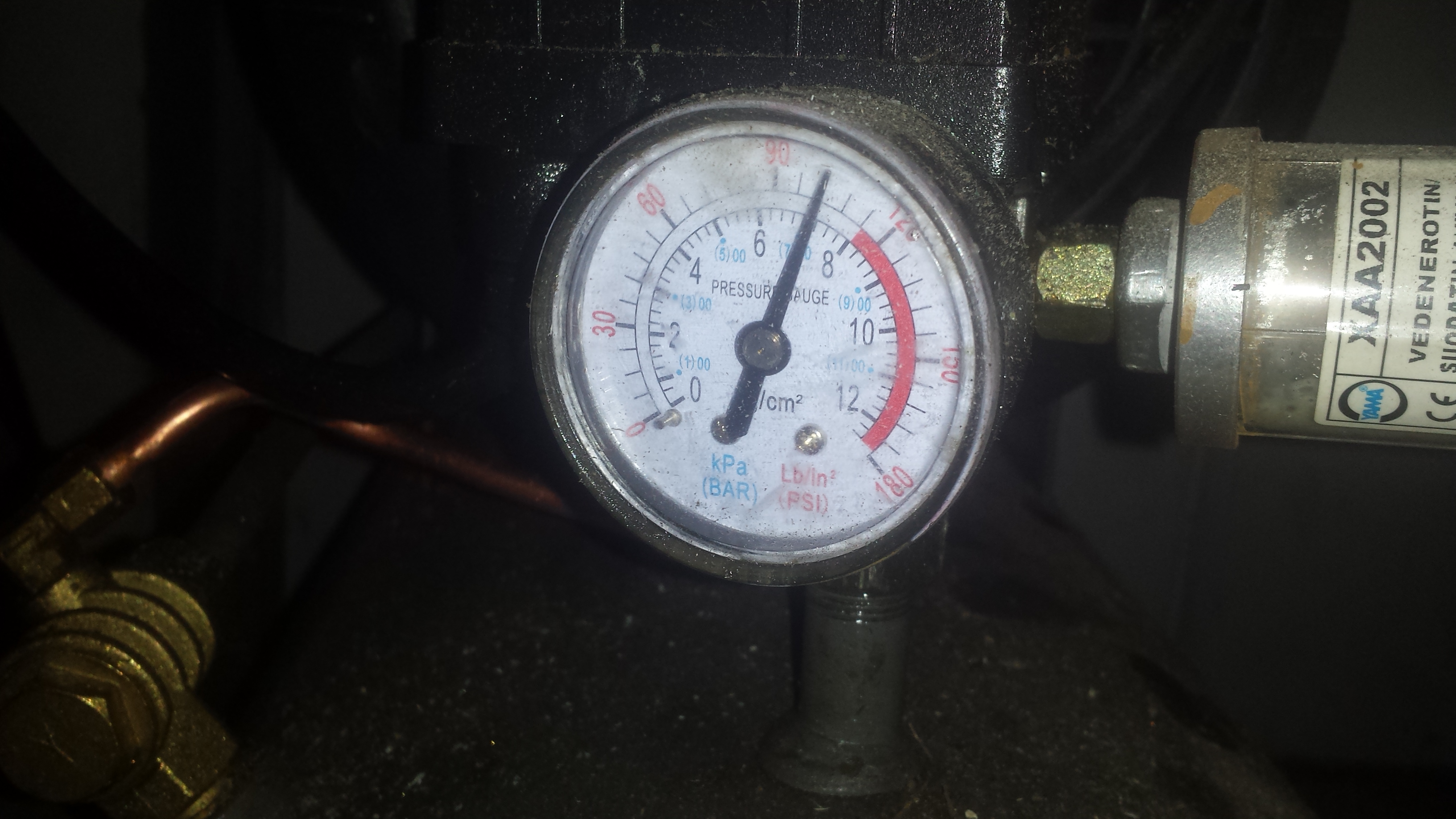 Nyt seisonut perjantaista ja ennenkuin laitoin ilmaa lisää (yritin ) ni 2 piiri oli 7bar ja 1. Piiri 6.5bar.