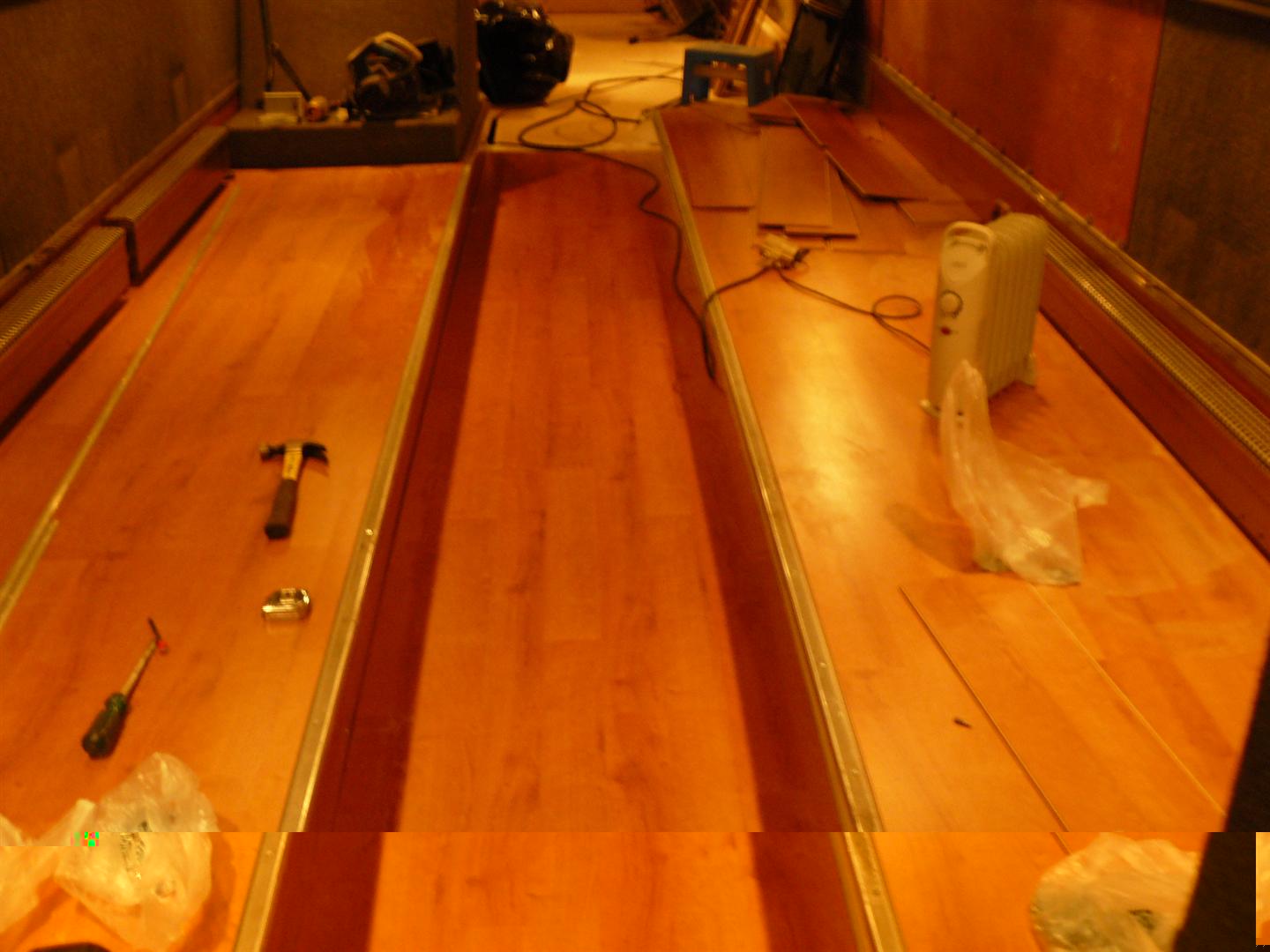 No nyt ois keulasta päin keskioven kohdalle lattiat laitettu laminaatista.Penkit tulee sen jälkeen kun saan isot vanerilevyt sisälle etteivät ole haittana.Makuuhuoneen rakentelu alkais seuraavaksi,jonka jälkeen on saunan vuoro.Hiljaa hyvää tulee.On se muuten mukavaa hommaa tuo rakentelu kun joutuu itse miettimään kaikki ratkaisut ja mahdolliset erikois työt.Minusta tuntuu että tästä saa jotakuinkin sellaisen kuin on omat tarpeet ja vaatimukset.Vaimokin alkaa pikkuhiljaa innostumaan kun pitää sisustusta alkaa miettimään ja väri sekä materiaali vaihtoehtoja.