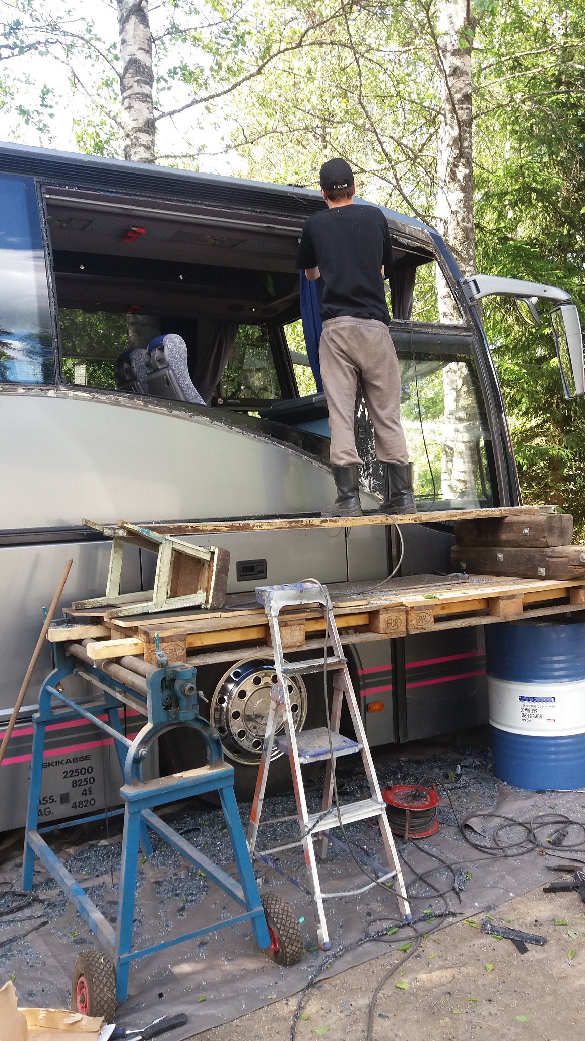 Parit reissut käytiin heti suomeen rekisteröinnin jälkeen. Penkit pois ja rekisteröinti asunto-autoksi minimi