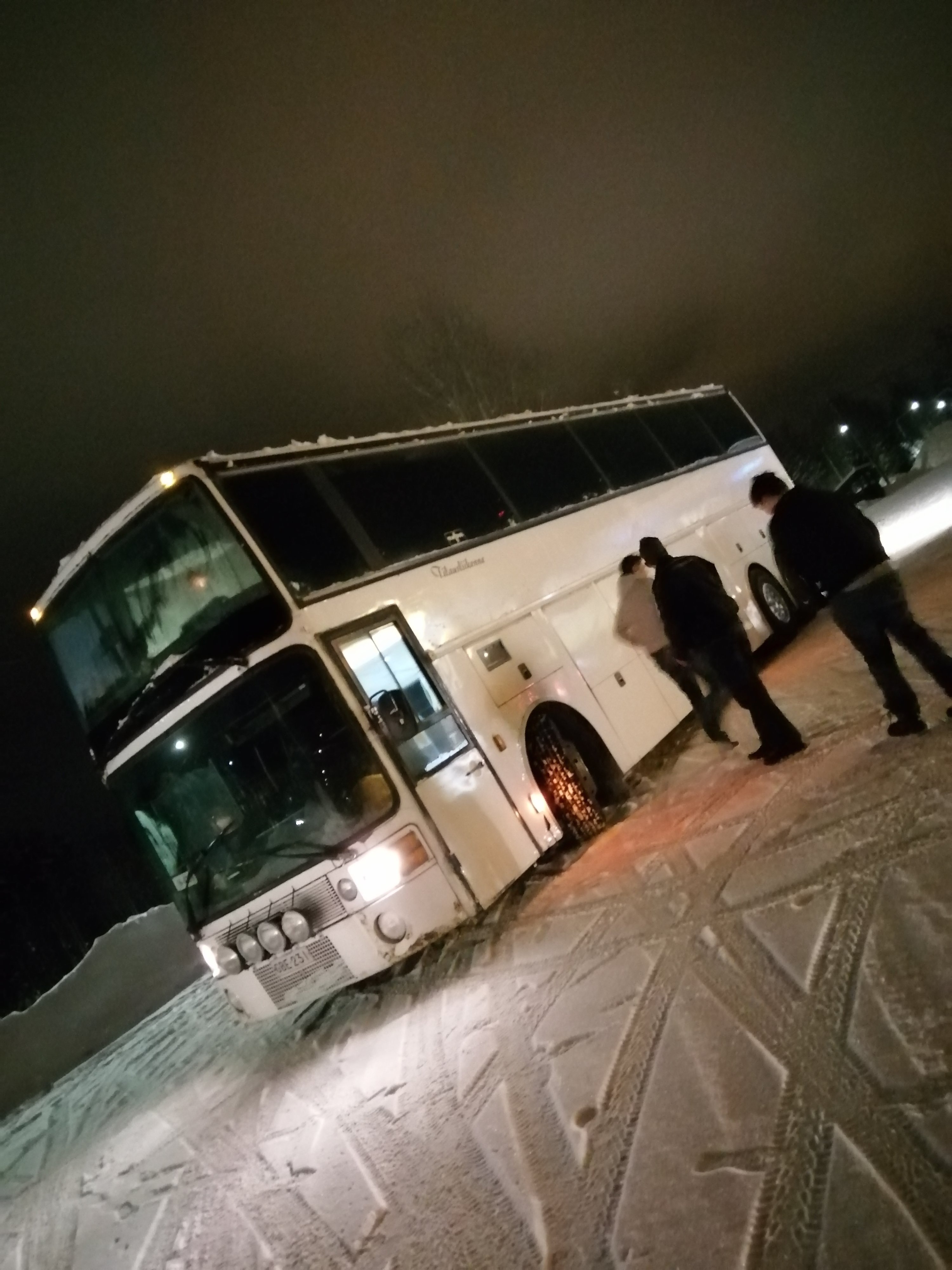 Takapää saatiin sopivasti halliin, joten pääsee rasvamontusta työstämään. EI montaa senttiä jää oviaukon, ja bussin väliin.