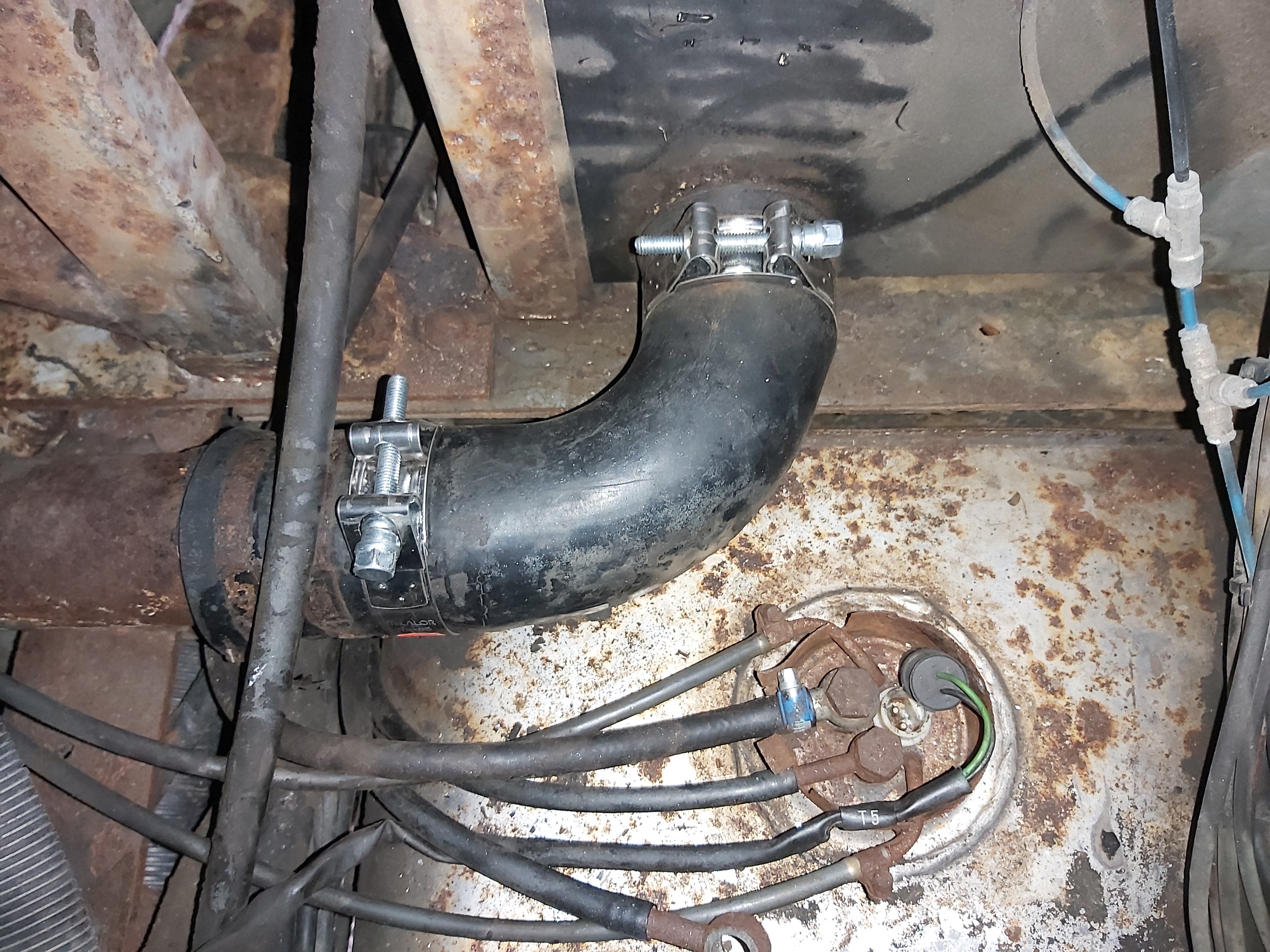 Anturin O-rengas oli kovettunut muoviksi ja oli pakko uusia. Se nyt kansii joka tapauksessa uusia. Ylä ja alatankki on liitetty metalliputkella jossa kumiletkut ja klemmarit molemmissa päissä.