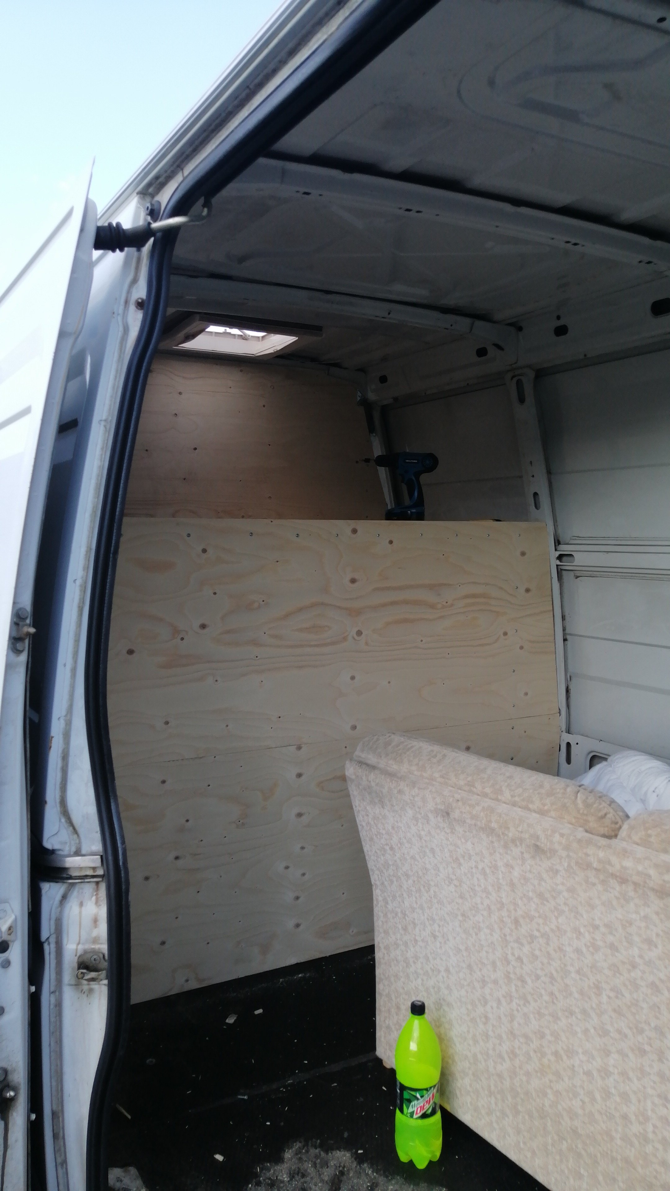 Joo penkkejä ei tule lisää eikä ollut tarkoituskaan. Katsuria ei kiinnosta kun pitää hakea väliseinän siirrosta todistus että kestää tietyn rasituksen. Korimuutoksia tekevät firmat niitä kirjoittavat mutta en jaksa uskoa että tuo 16 millinen vaneri ruuveilla ja liimalla kiinnitettynä olis heikompi kuin se millinen peltiseinä poppareilla mitä orkkis on. Pääsääntöisesti tavarankuljetusta varten on tämä lisäpunkka rakennettu mutta saahan siel nukkuakkin jos tarve vaatii. Verkkoseinän hankin tuohon eteen viel ettei tule romut niskaan jos tulee äkkipikaapysähdys. Emännän likka(jota varten tää punkka tehtiin) sen koemakasi jo ja totesi että hyvä on. Vähän liimailin lisäksi äänieristysmattoakin peltiseiniin.