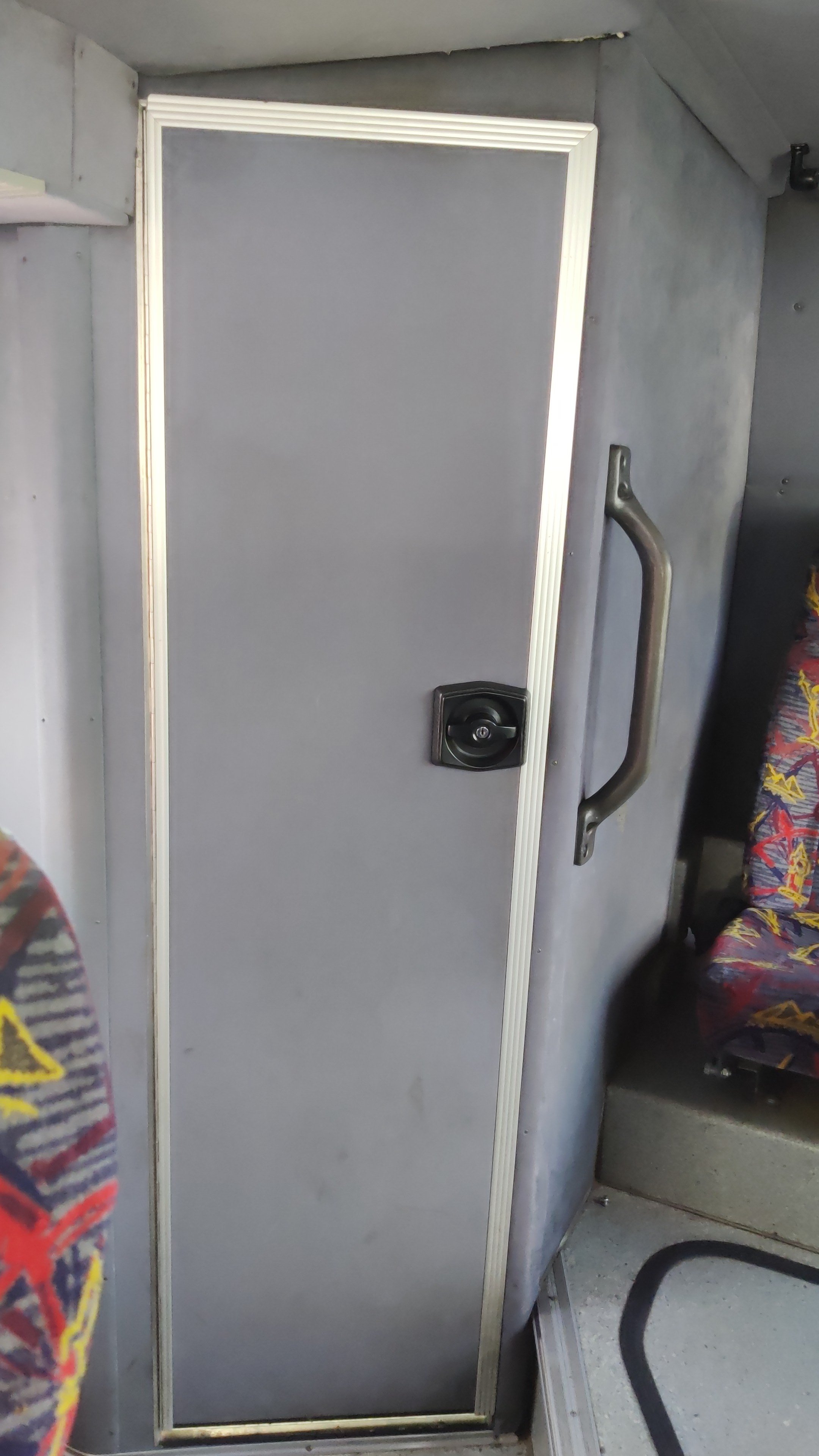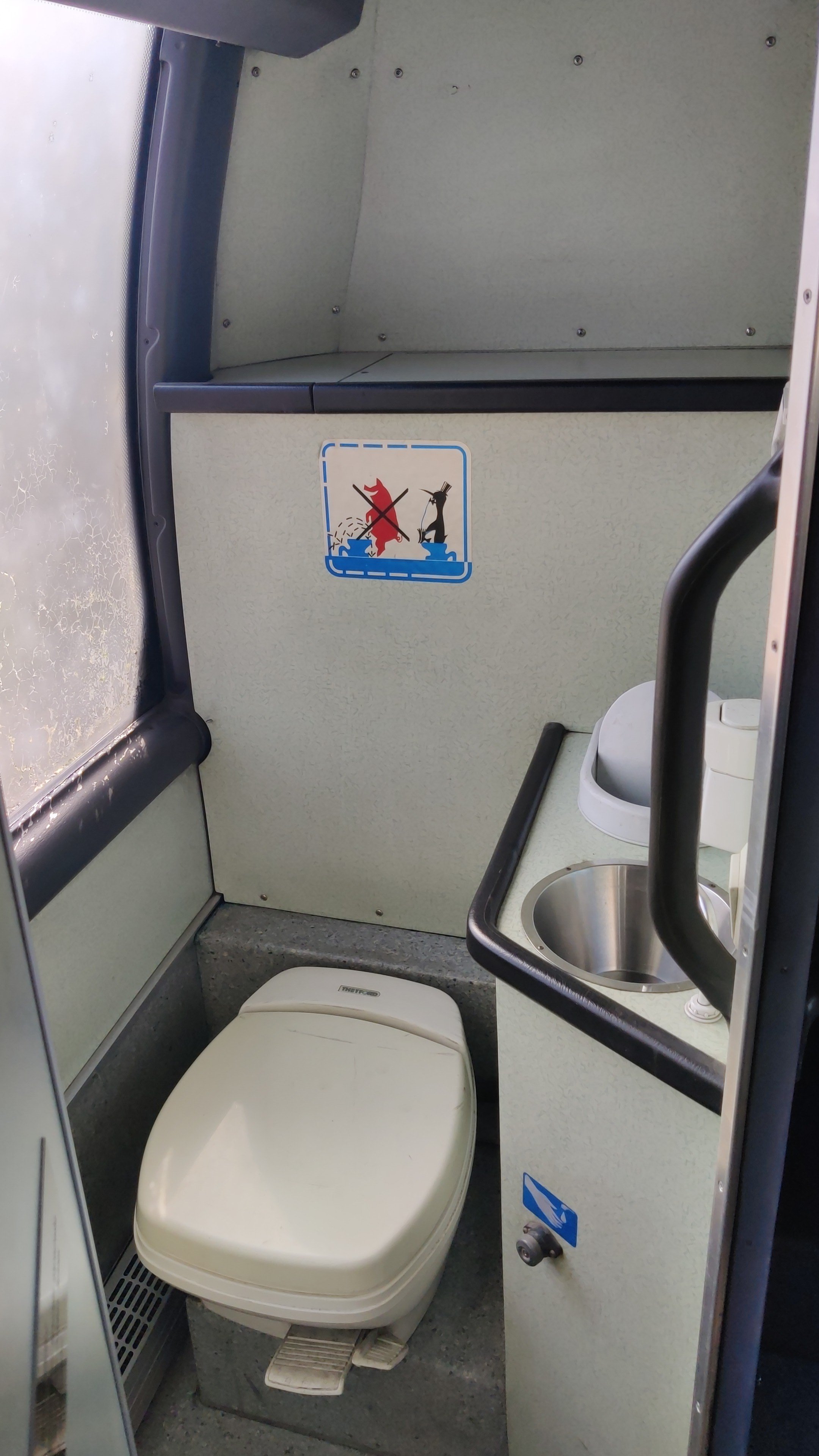 Suunnitelma on laittaa väliseinä kulkemaan vessan seinän myötäisesti pari metriä bussin etuosaan kohden.