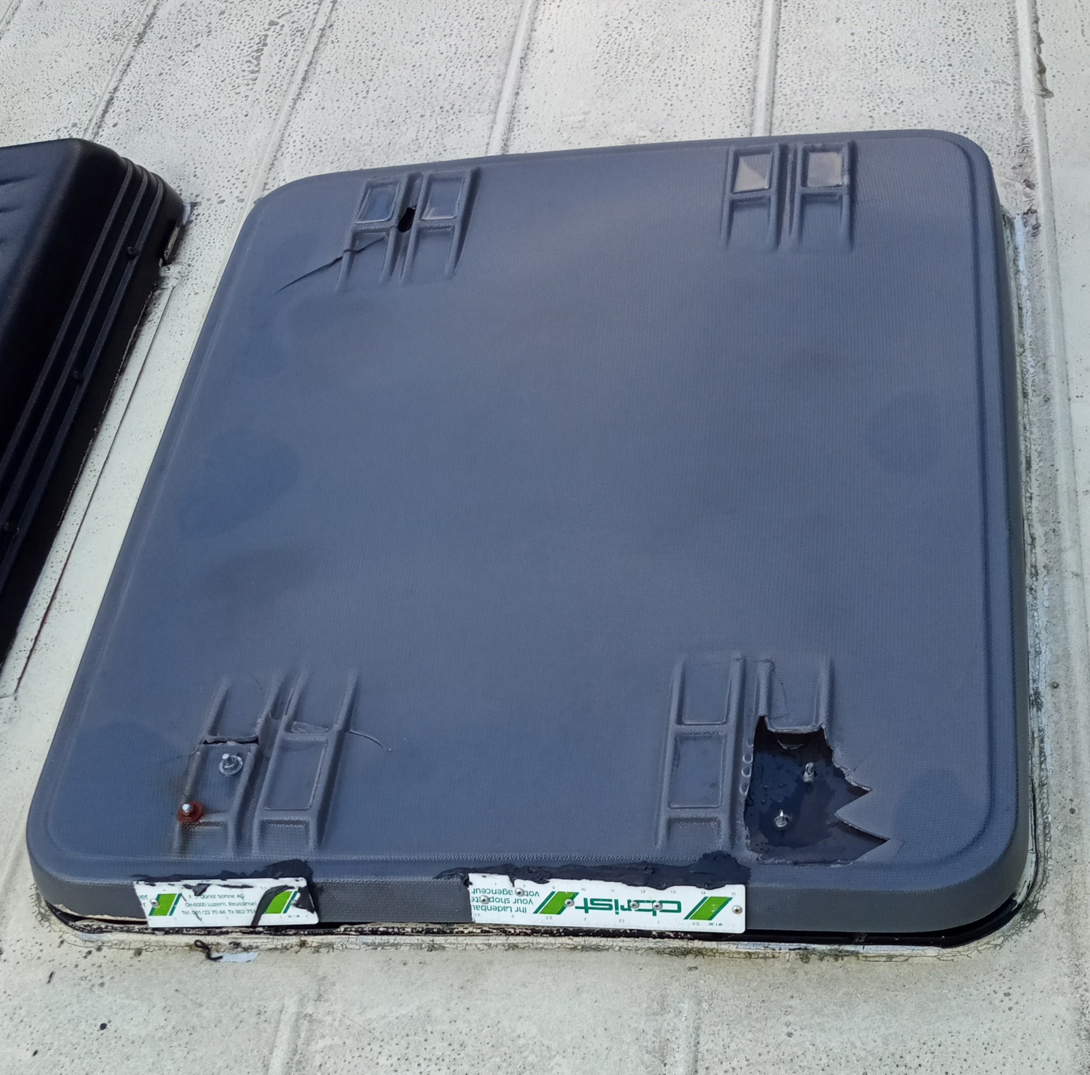 pikakorjauksena kattoluukkuun menee myös noin neliön pala rakennusmuovia.