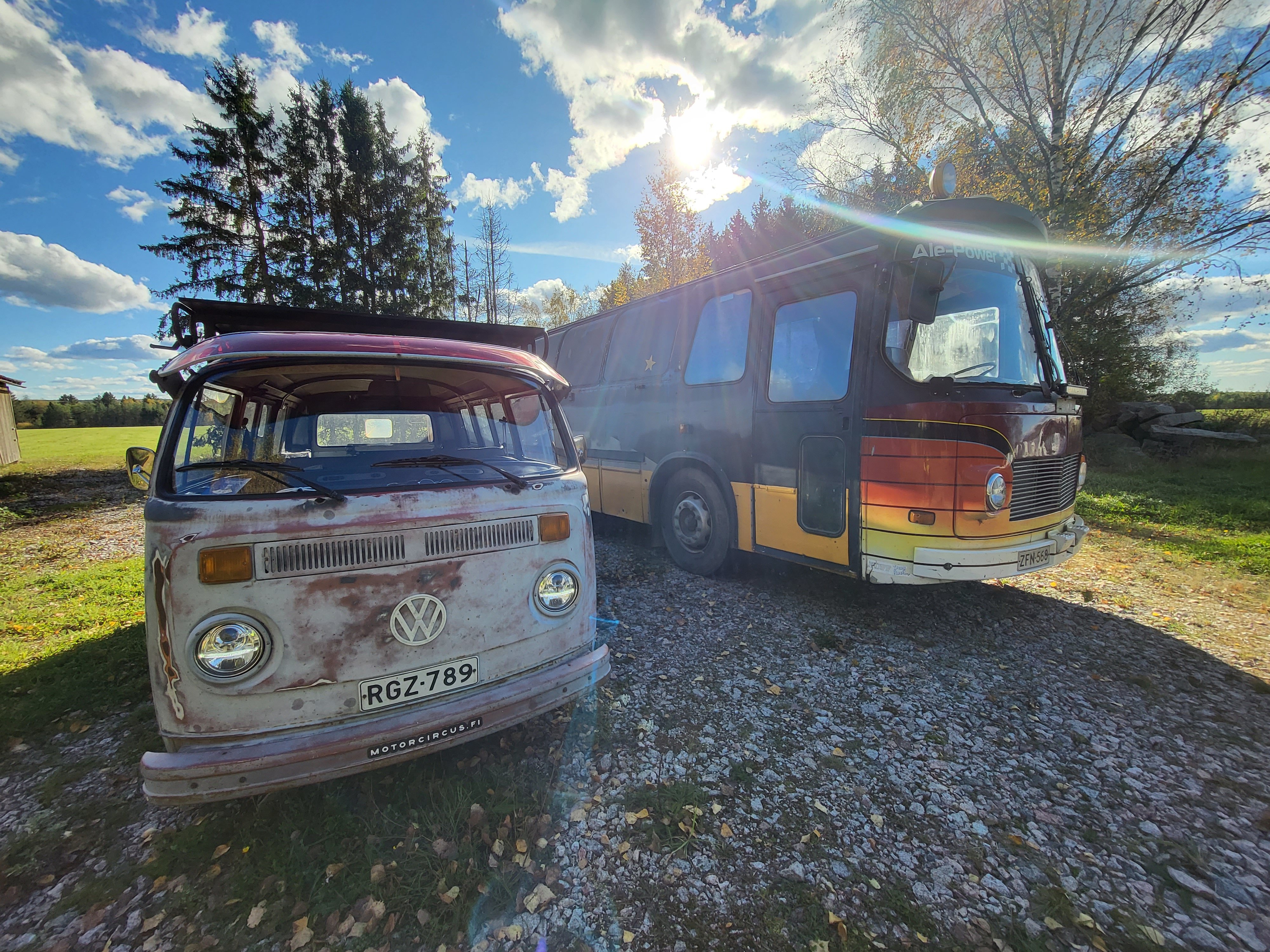 Keikkailtuani sähköautoksi muunnetun Volkkari minibussin kanssa jonkin aikaa, heräsi ajatus isosta bussista. Rakennanpa autonkuljetuslinja-auton, johon lastataan esitysroippeet ja tietysti se hippipaku. Niin ja siitä tulee sähköauto toki. :wink: