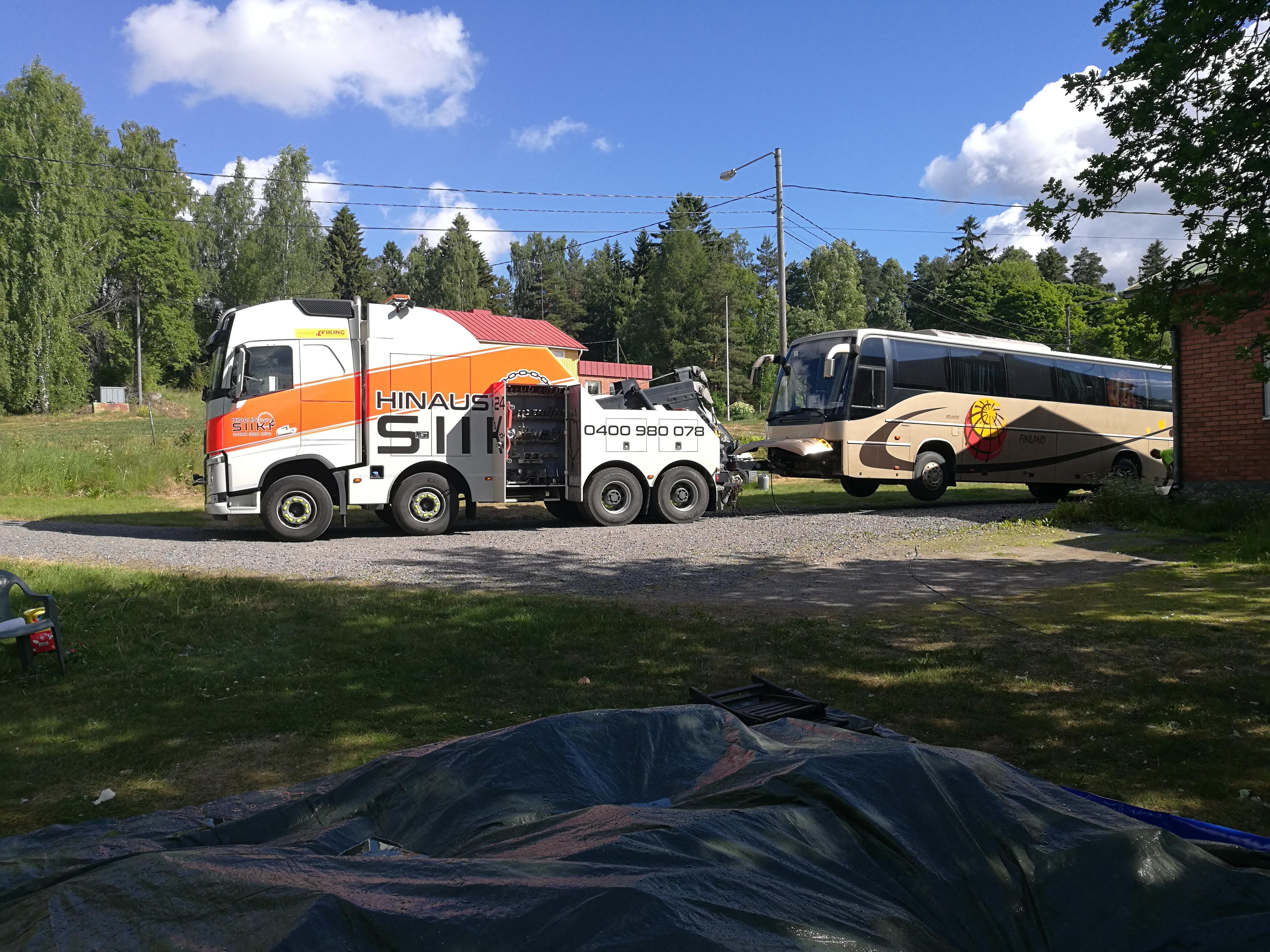 Bussi pihassa ja reissukunnossa.