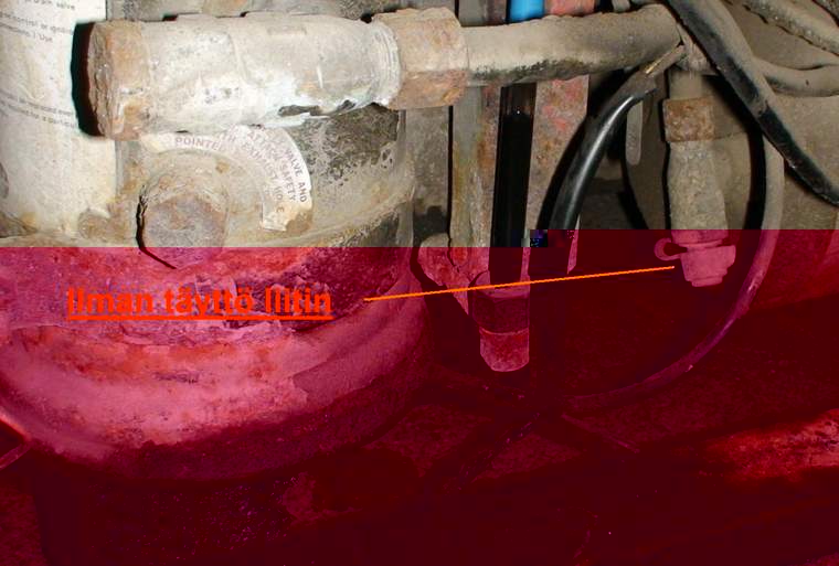 Alta tuleva letku tulee auto kompuralta ja ylempi lisäkompuralta. Ylin putki menee säiliöön.