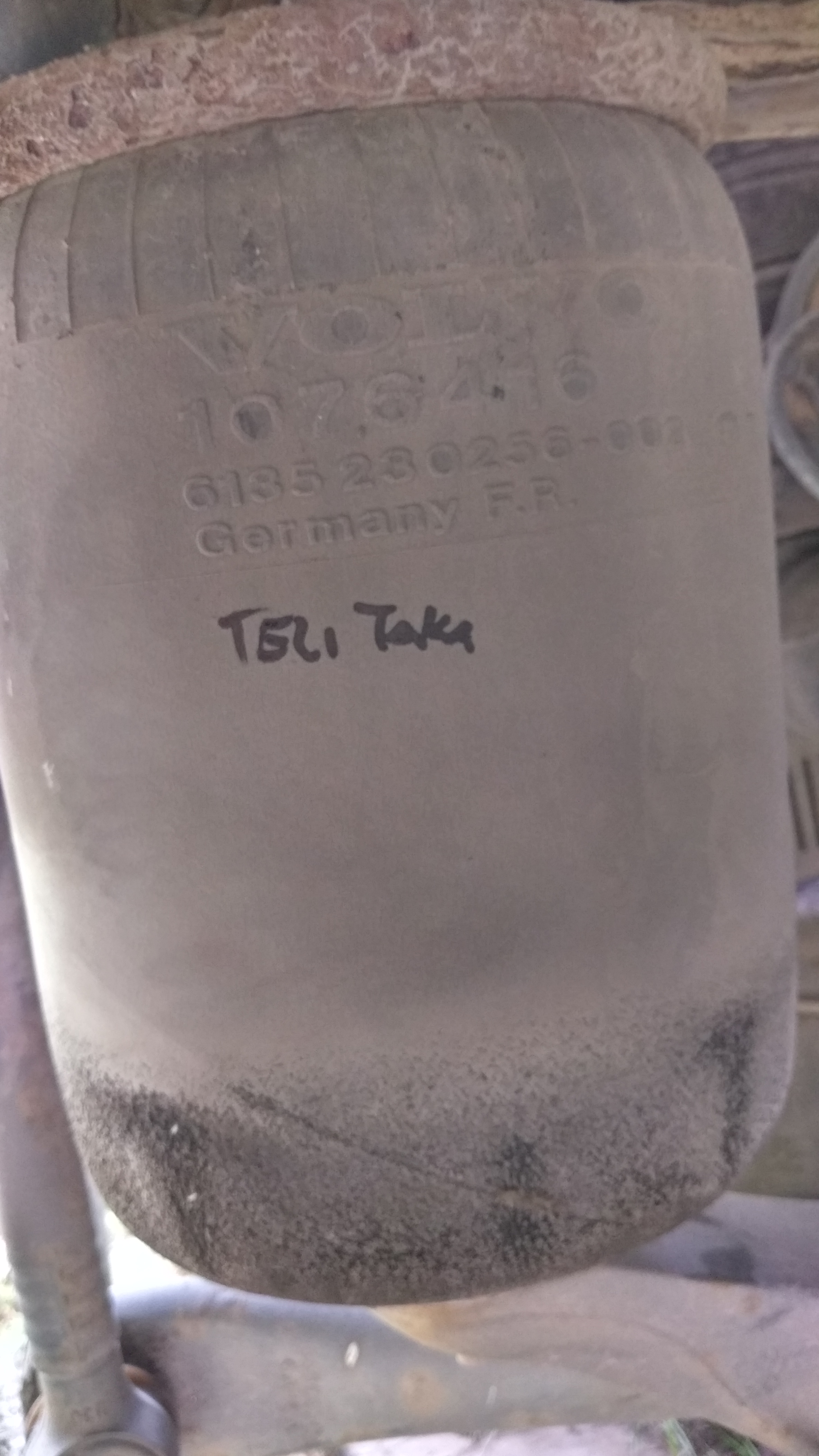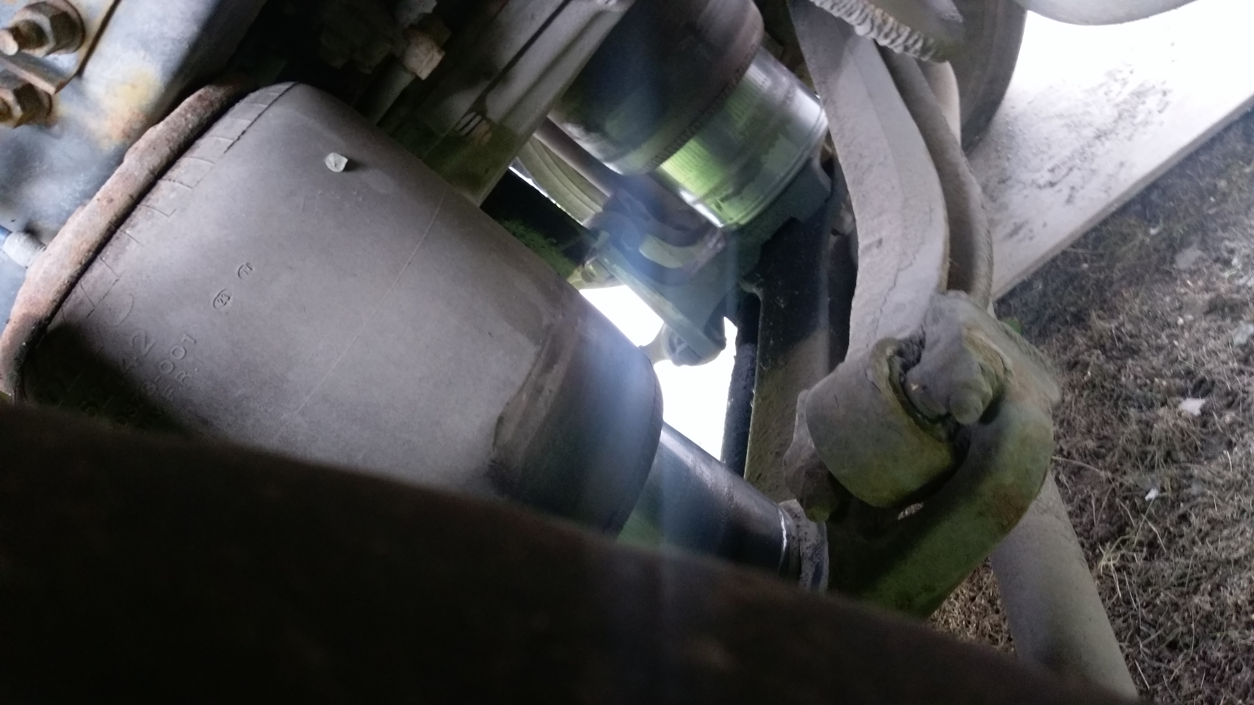 No nyt on vaihdettu, olihan savotta, alapää irtosi 90° kääntämällä yläällä 2xM10 mutterit volvomaisesti 15mm kannalla. Pieniä halkeemia oli kumissa, mitkä näki, kun jousi oli tietyssä asennossa. Puukotin pussin auki ja pohjauskumiki oli jo murtumassa palasiksi. Ruoste ei ollu ongelma.