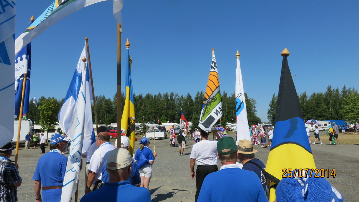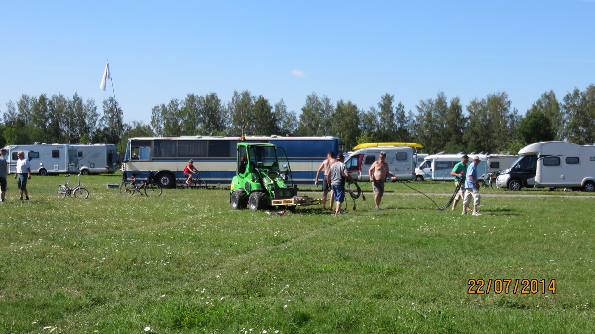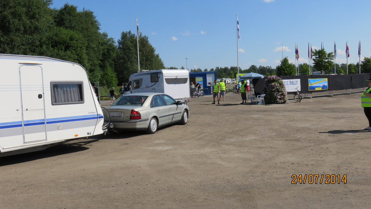Tänään 24.07.2014 klo 12:00 avattiin portti ja karavaanarit alkoivat jonossa ajaan sisään alueelle. Yksi lipputanko lisää piti aamulla pystyttää kun ilmeisesti tuli uusi maa mukaan entisten lisäksi.