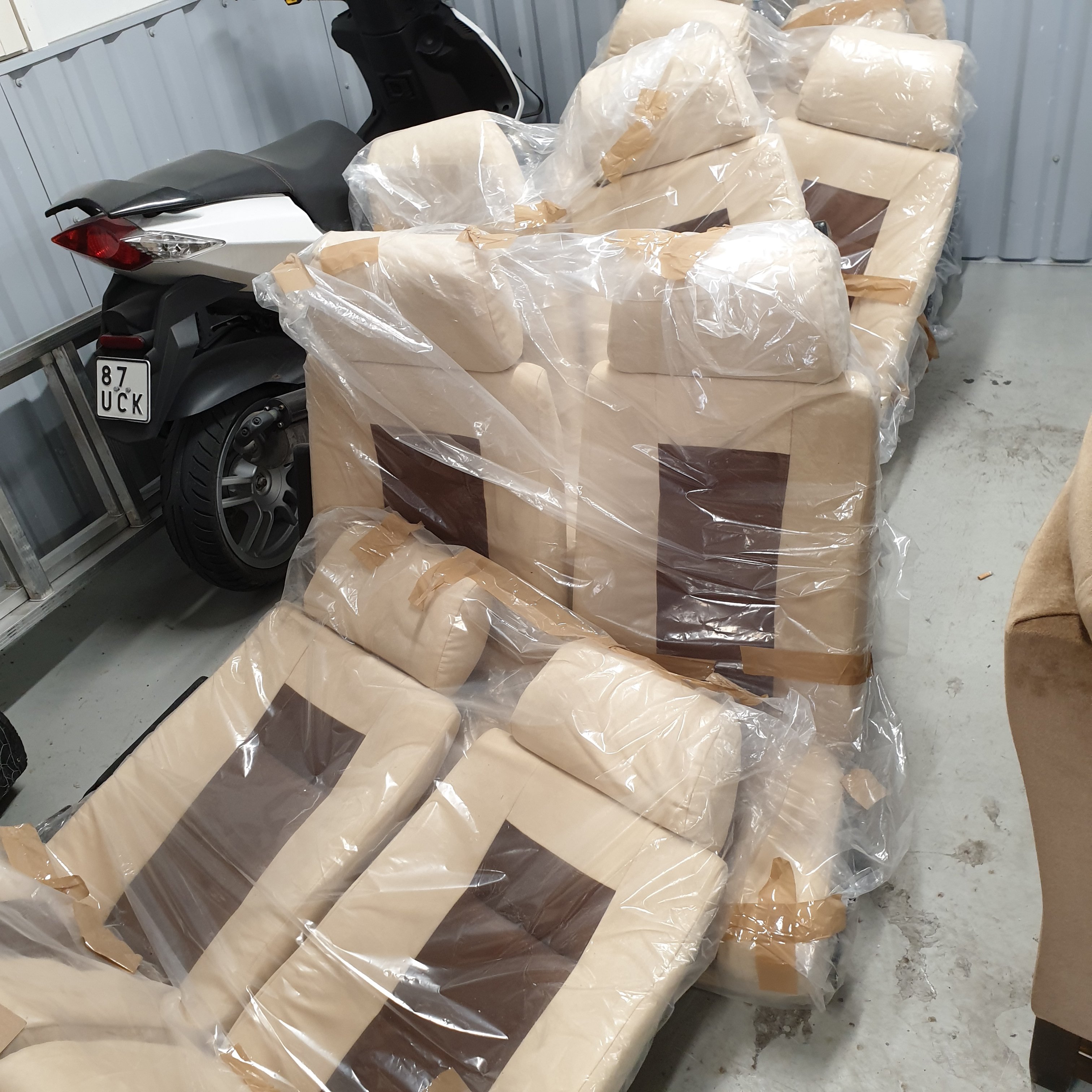 Myynnissä olisi hienot, uudelleen verhoillut penkit.