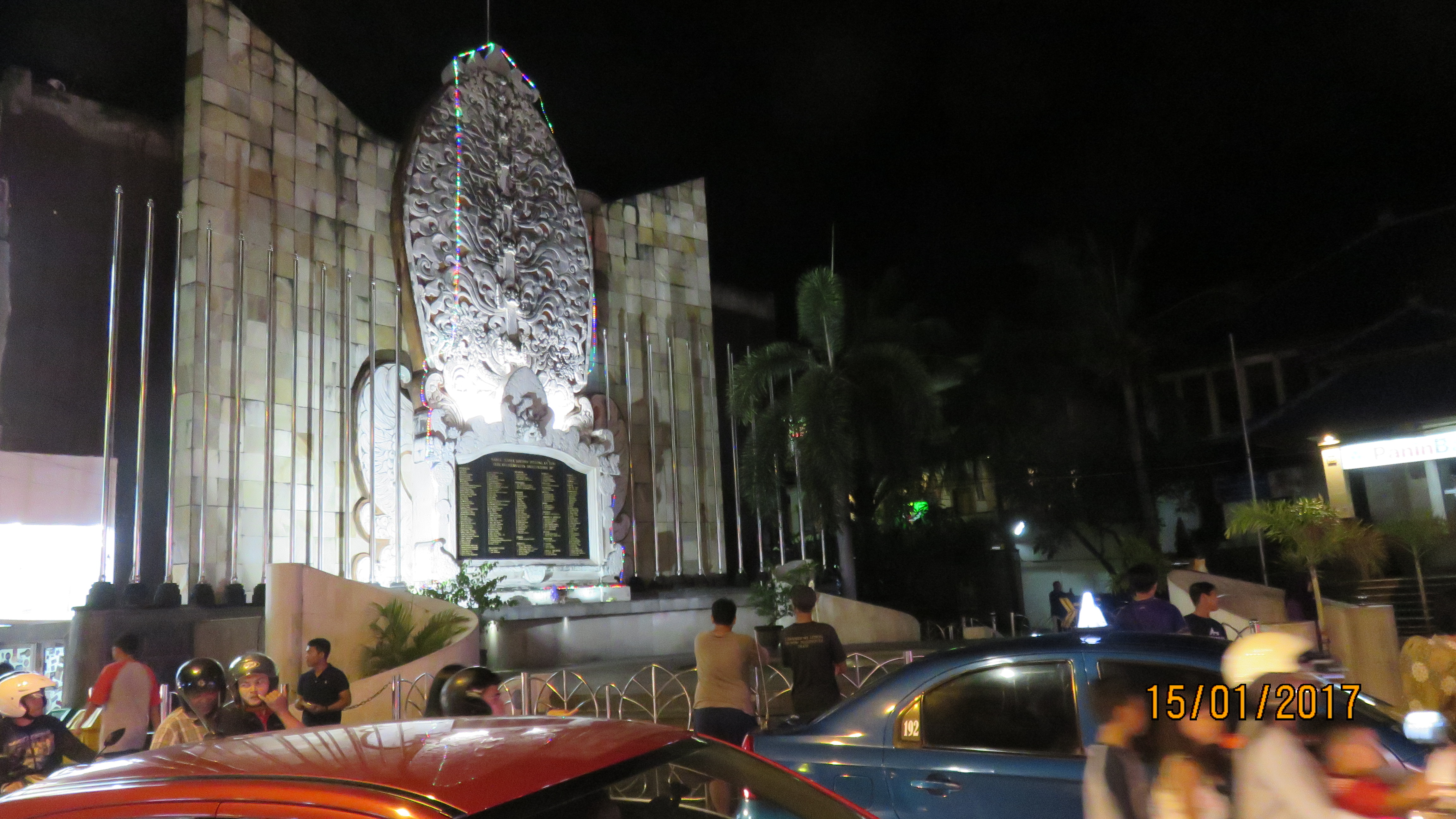Muutimme Kutalle 14.1. ja asumme Jl. Legianiilla hyvin keskeisellä paikalla n. 70m pommiattentaatin mustomerkiltä Zerro Ground jonka vieressä on Kutan ykkäs iskupaikka Sky Garden. On sen edessä komeat sisäänheittäjät. Yö kerhoja on kuin sieniä sateella Sky Garden vieressä, musikn jumputti niin kovaa kadullakin että kuulolaittta ei olisi tarvinnut.