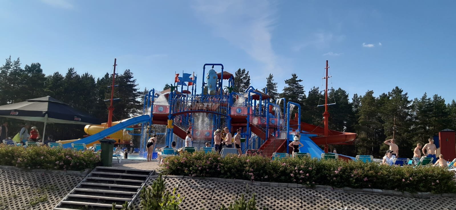 Kalajoelta suuntasimme Vaasaan ja yövyimme Top camping Vaasassa pari yötä. Kerran aikaisemminkin on yövytty tuolla. Ihan hyvä paikka. Minigolffirata on kyllä päässyt huonoon kuntoon, eikä johtunut pullon sisällöstä. Rata repsotti ja oli täynnä puunlehtiä. Mutta tuurilla meni muutama pallo reikäänkin. Tänään (7.7) aamulla pakattiin auto ja mentiin Tropiclandiaan päiväksi. Ei ollut hirveää ryysistä. Ehkä hieman jo viileä keli. Vesileikkien jälkeen ruokaa ja nokka kohti Poria. Kävimme Kristiinan kaupungissa kaupassa ja tankilla. Nyt olemme yyterissä parkkipaikalla tämän yön.