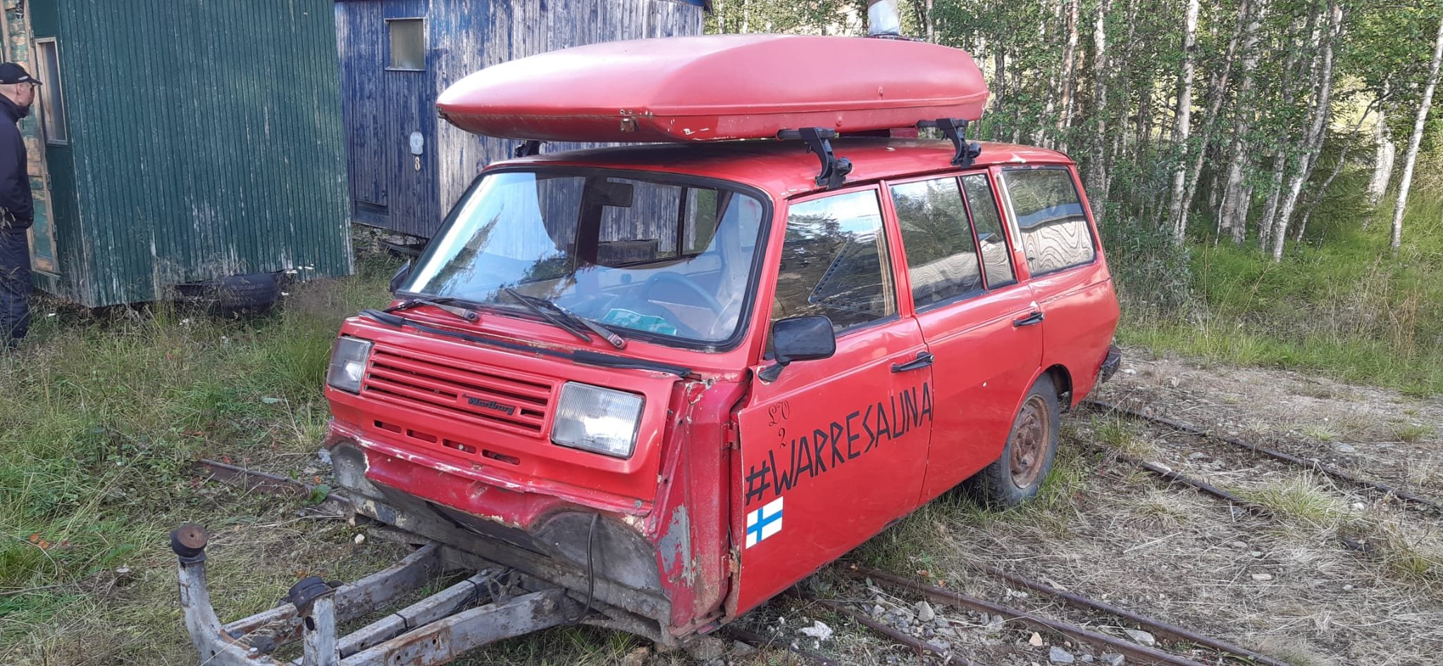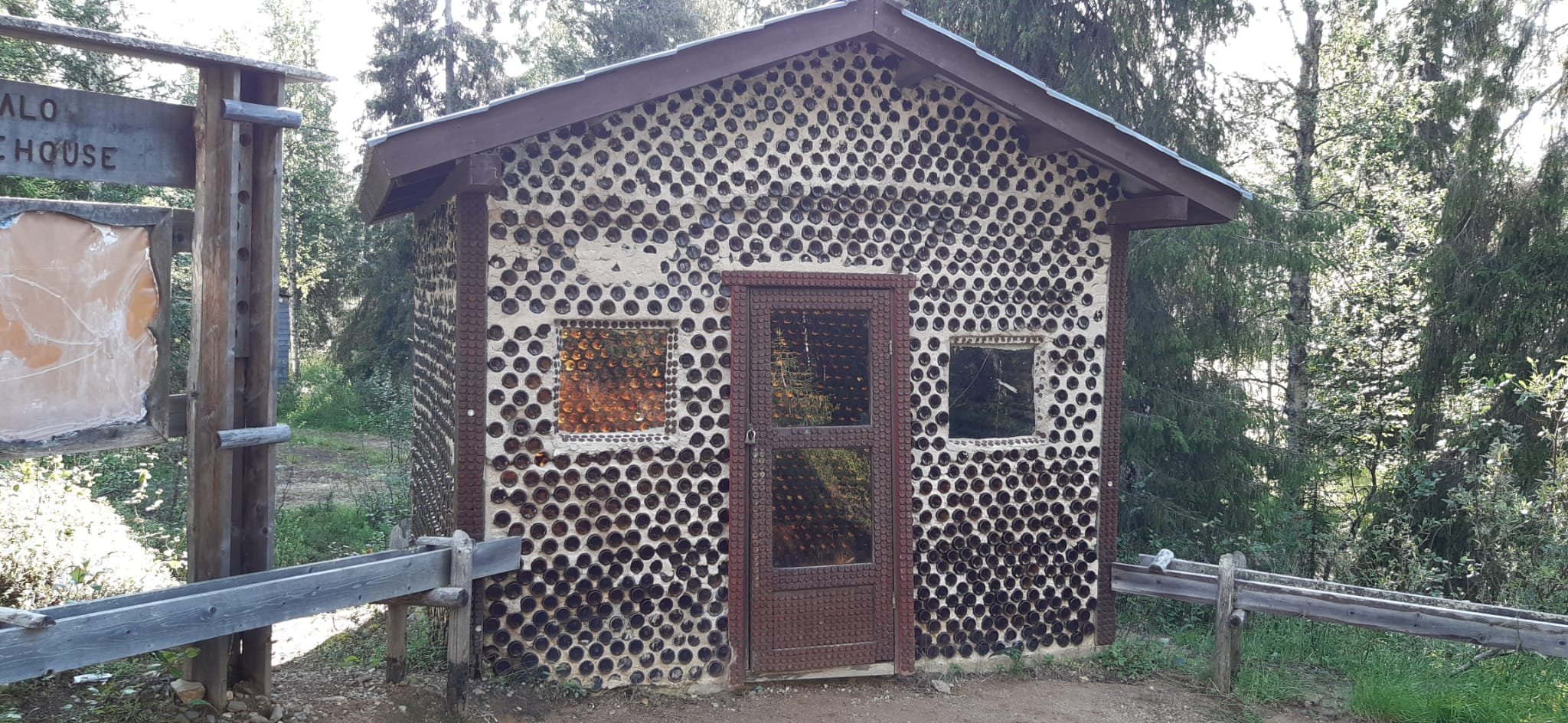 . Tankavaarassa oli hauska Warppuri sauna. Ja pulloista rakennettu talo.