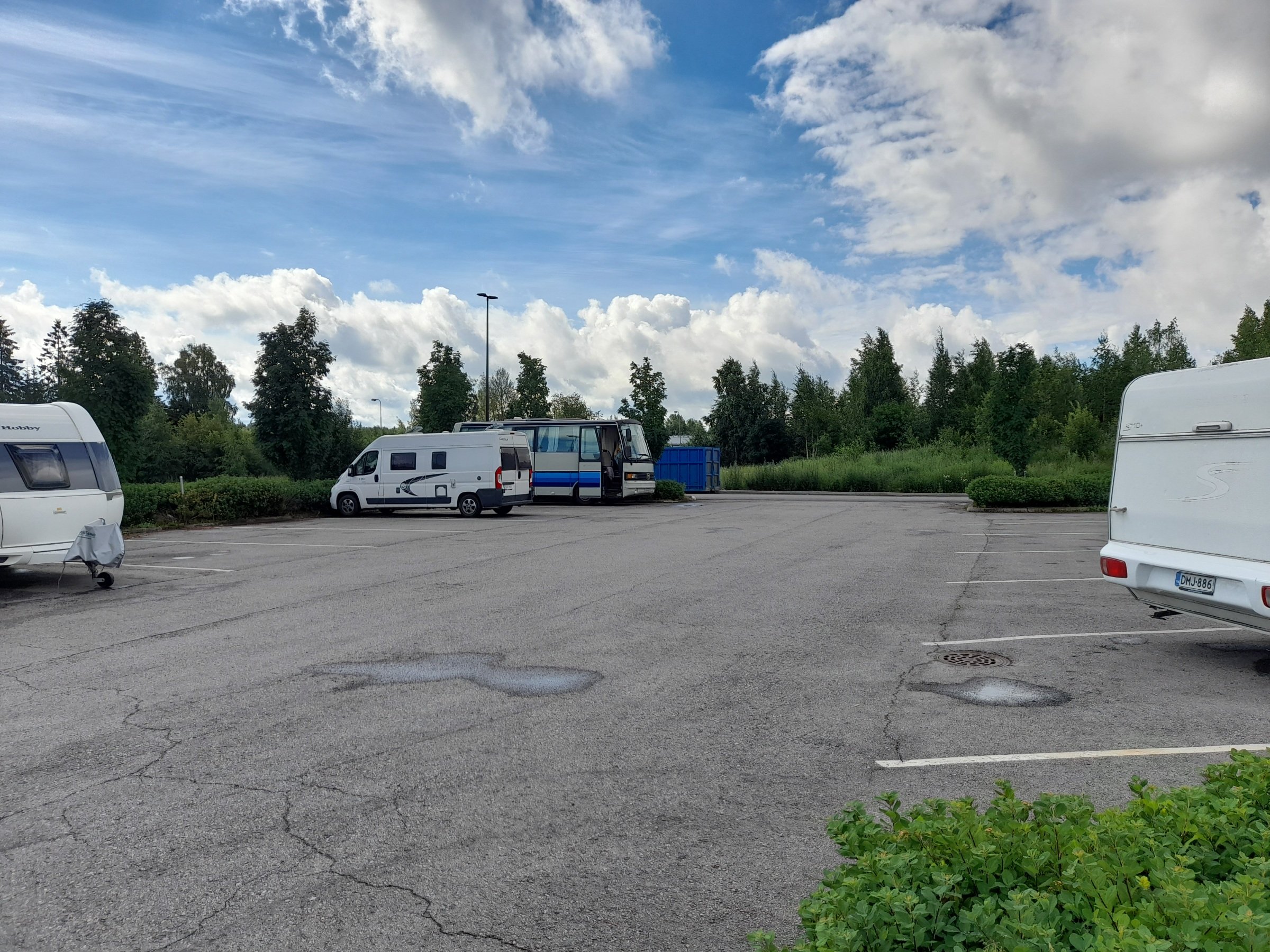 Sunnuntai 4.7.2021 lähdettiin ajelemaan etelää kohti. Myöhään illalla lähdettiin, jos vaikka olisi hieman viileempi ajella. Eipä juuri. Ensimmäinen yö vietettiin Raahen raviradan parkkipaikalla. Reilusti tilaa ja rauhallinen. Poikkeaa hieman isolta tieltä. Aamulla jatkettiin matkaa kohti Kalajokea ja hiekkasärkkiä. Jos olis kerrankin tarpeeksi lämmintä että voisi itsekin uida