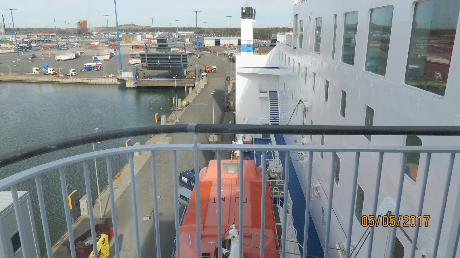 Viimeinen ajopäivä Saksassa oli n. 280 km ja aikaa tuohon koko päivä ja iltakin päälle. Tankkasimme Rhüdenissä vähän wttä pääsemme Lübeckin Cittiin halvalla tankkaamaan. Laskin että silloin olisimme ajaneet tasan 1200 km edellisestä tankkauksesta jalaskenallisesti tankissa olisi jäljellä 20 litraa polttoainetta. Niin vähiin eiuskalla jättää 300 litran tankkia voi viellä hörpätä ilmaa. Ensimmäinen tankkaus 101 litraa ja citti 173 litraa = 274 litraa eli tankkiin jäi 26 liraa. Cittissä tankattiin myöc Doppekorn ja Mummelmannia. Seuraavaksi ajettiin satamaan jossa kävimme syömässä sekä Sarin kaupassa ostamassa olutta. Laivaanajo tapahtui klo 11:40 Saksan aikaa meidät vietiin yksin 5-kannella ihan keulaan. Yksi ryhmä matkailuautoja oli jo viety 7-kannelle muut matkailuautot saivat viellä odottaa.