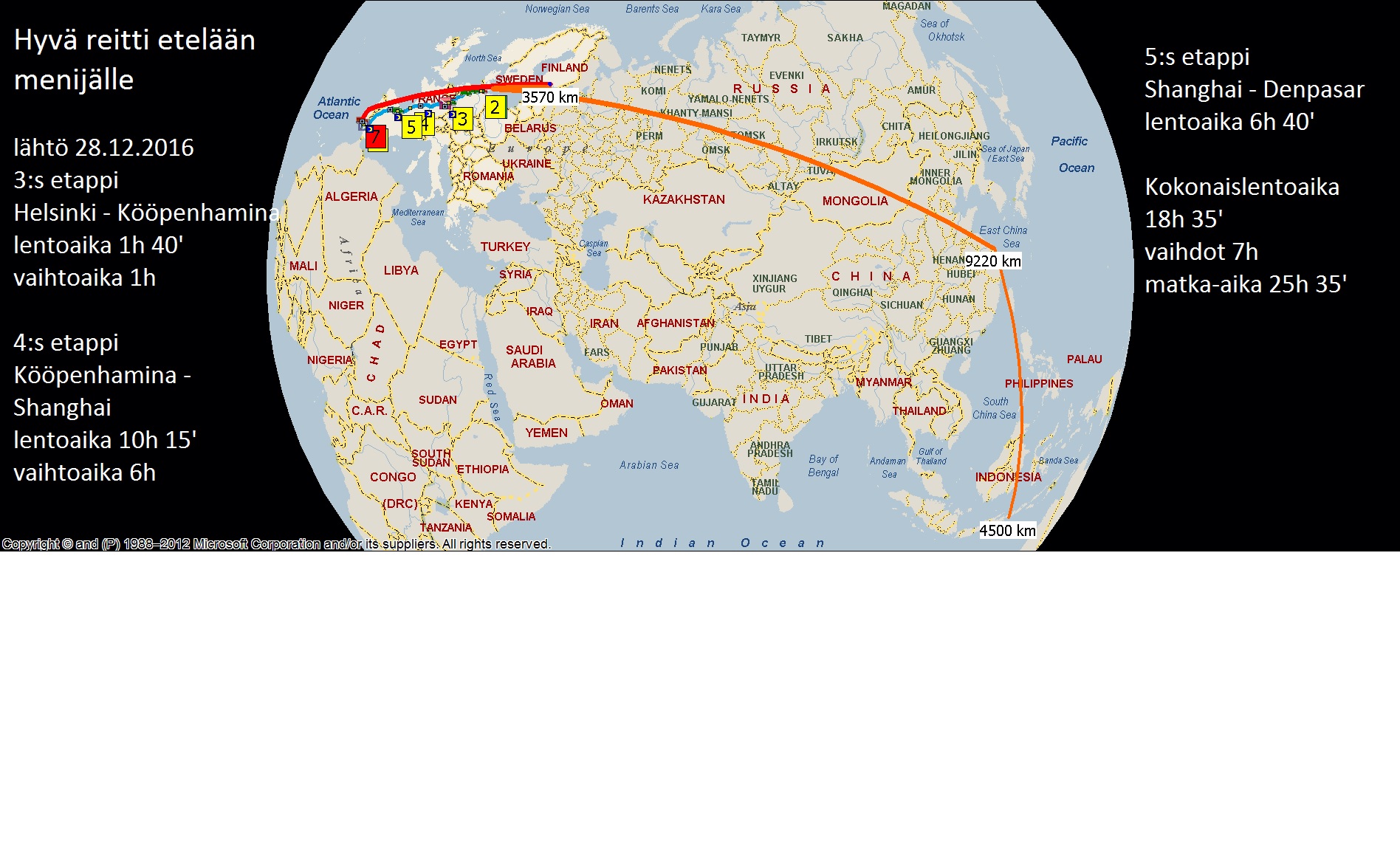 Tuo meidän etelän matka alkaa 28.s joulukuuta Helsingistä - kööpenhaminaan josta lennämme suoraan Shanghaihin. Helsingistä lähdettyämme käymme kääntymässä köpiksessa ja tulemme takaisin Tallinnan yli 4h 20' myöhemmin. Jostain syystä Finnair ei pärjää hintakilpailussa niin että olisin säästänyt tuon 4h 20'.