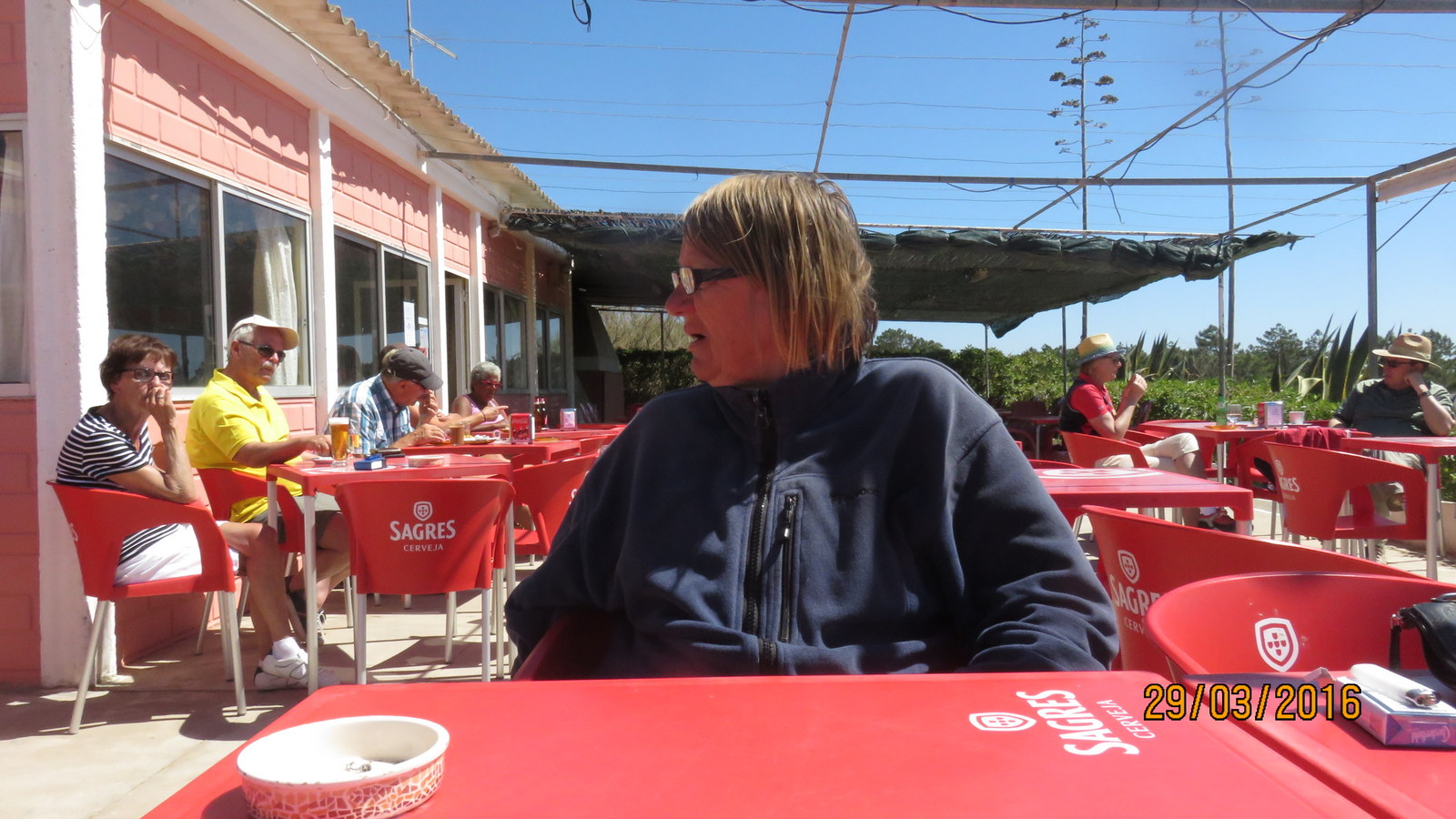 Kävimme ruokailemassa Espanjan puolella eilen. Marssimme lauttasatamaan ostimme liput ja odotimme viereisessä marinan ravintolassa pullollisen (olutta) verran laivan lähtöä. Matka on pitkä 1,9km perille päästyämme etsimme ruokapaikkaa mutta kello oli jo Espanjassa yli viiden. Ruokailimme snack baarissa jonka jälkeen menimme leikkipuiston laidalle pöytään istumaan katselemaan mitä auringon paiste on aikaansaannut kevään merkkeinä.