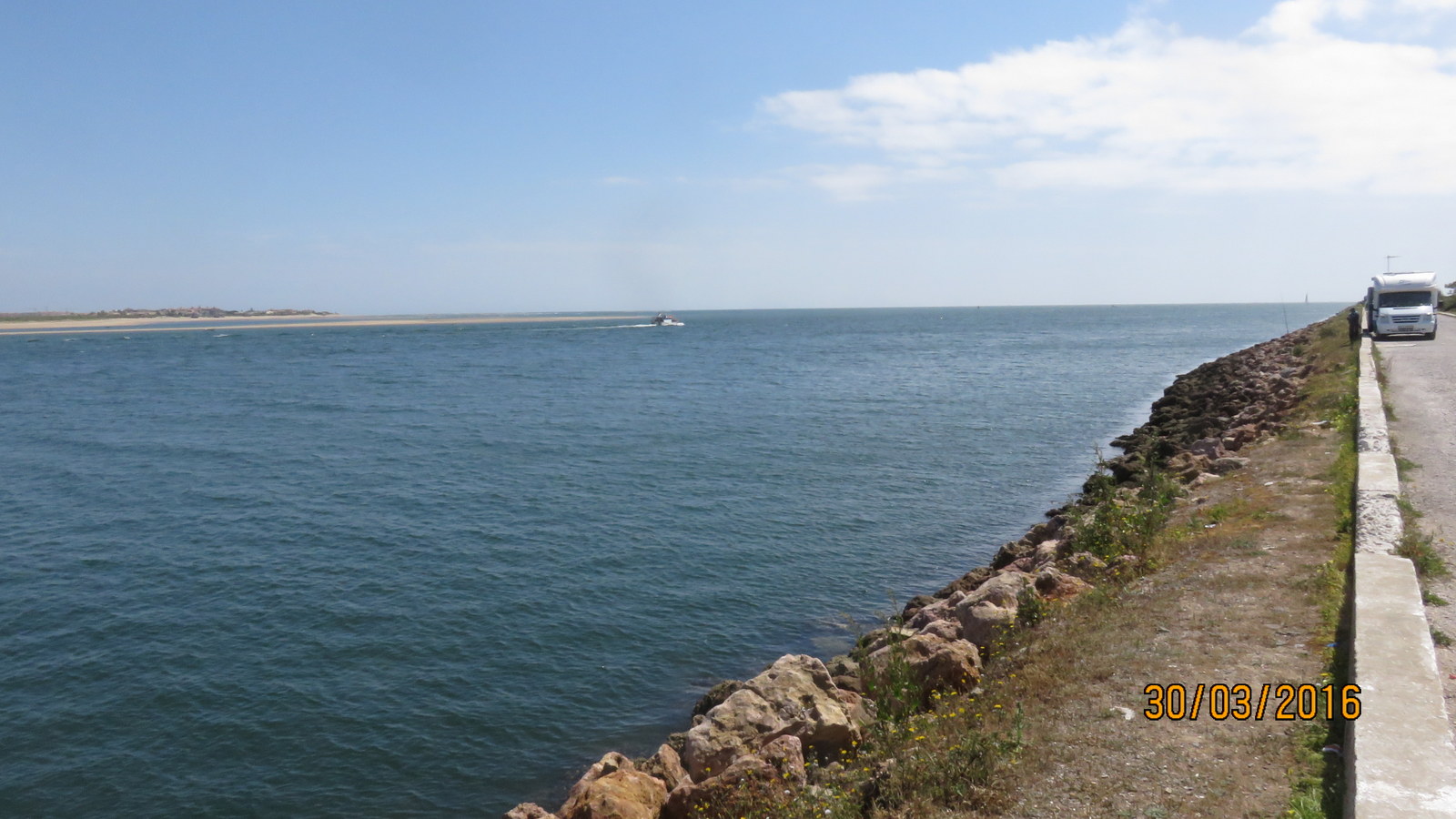 Olemme rajajoen rannan lauttasataman vieressä maksullisella parkkipaikalla. Matkaa kertyi 130 km. Eikä matkan varrella yhtään tietyö pysäytystä koko matkalla. Asvaltointi oli valmis asvaltoinin osalta välillä Silves - Boliqueime